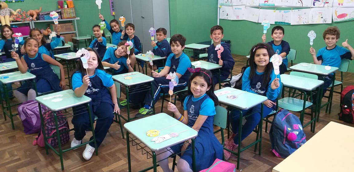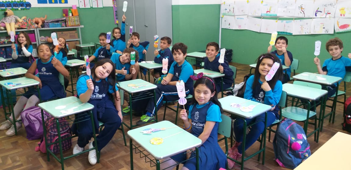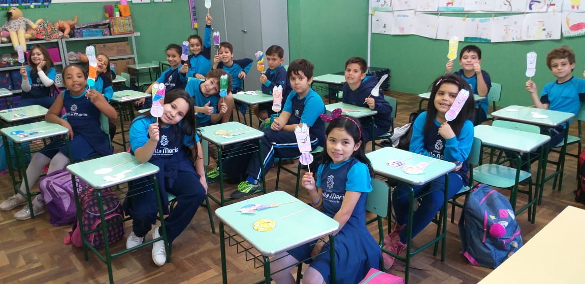 Os alunos da turma 21 confeccionaram os sinais de pontuação em forma de fantoche e depois brincaram com o jogo “Qual é o sinal?”. A professora Carina lia a frase e os alunos tinham que levantar o fantoche do sinal adequado. Foi um momento de aprendizagem e muita diversão!