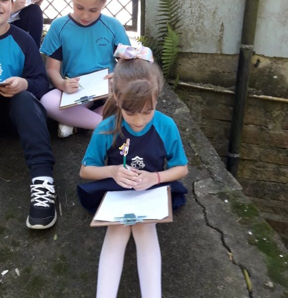 No dia 12 de setembro, a turma 23 participou da aula de Iniciação Científica com as professoras Carla e Rita de Cássia. Os cientistas, com suas prancheta, observaram e registraram como é um ecossistema, fonte, árvores, orquídea, pássaros, borboletas, pedras, aranhas, na área verde do Colégio Stella Maris.