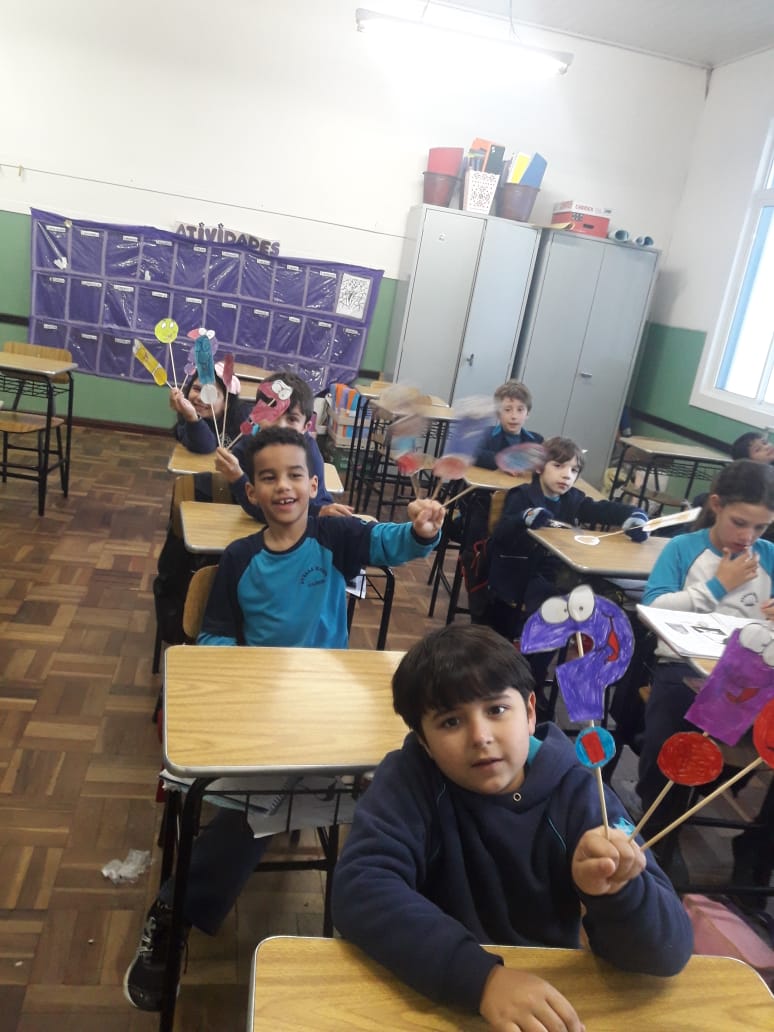 Os alunos da turma 23 confeccionaram os sinais de pontuação em forma de fantoche e depois realizaram o jogo “Qual é o sinal?”. A professora Rita lia a frase e os alunos levantavam o fantoche do sinal adequado. Foi um momento de aprendizagem e muita diversão!