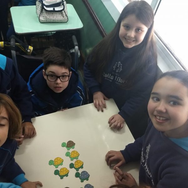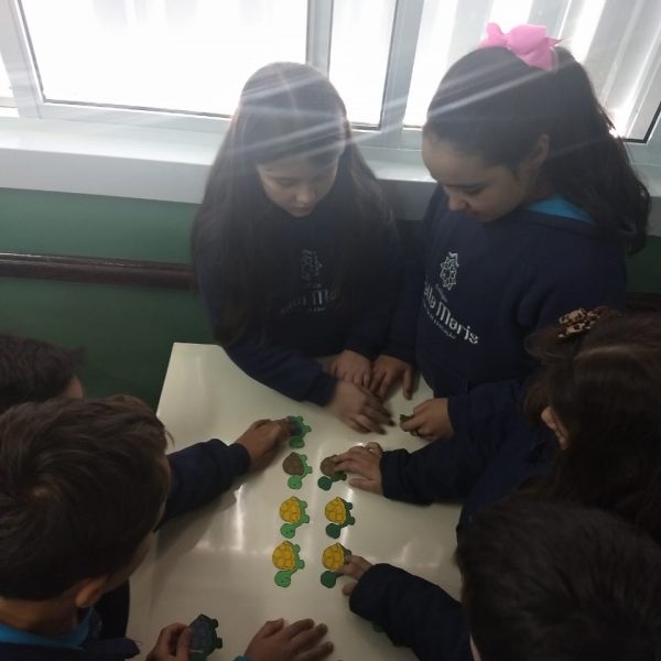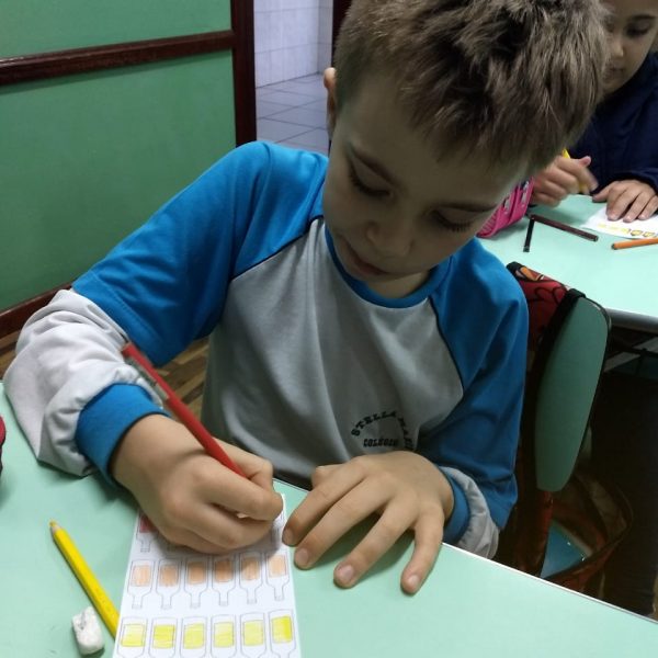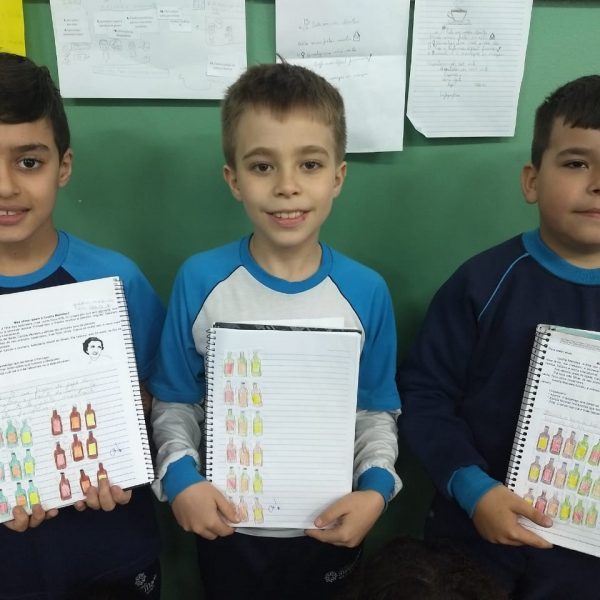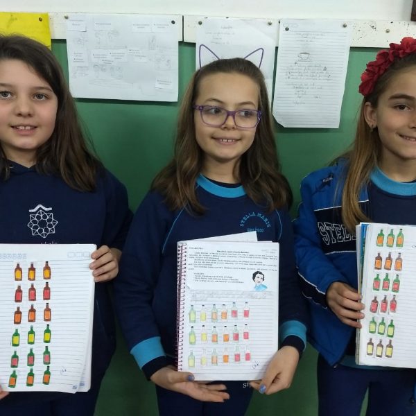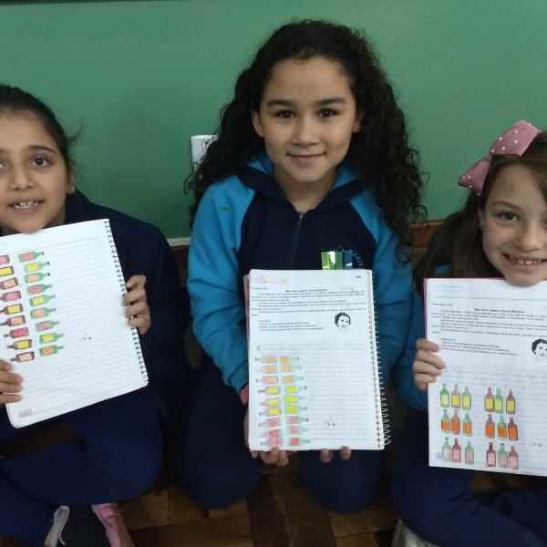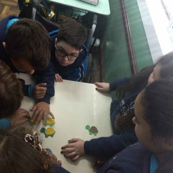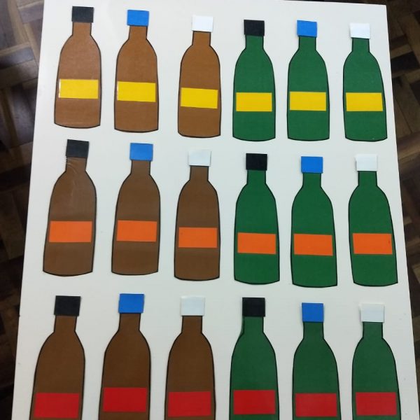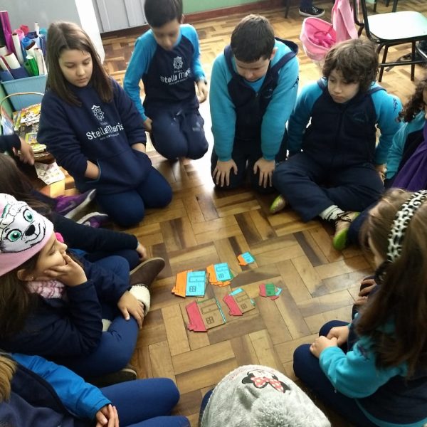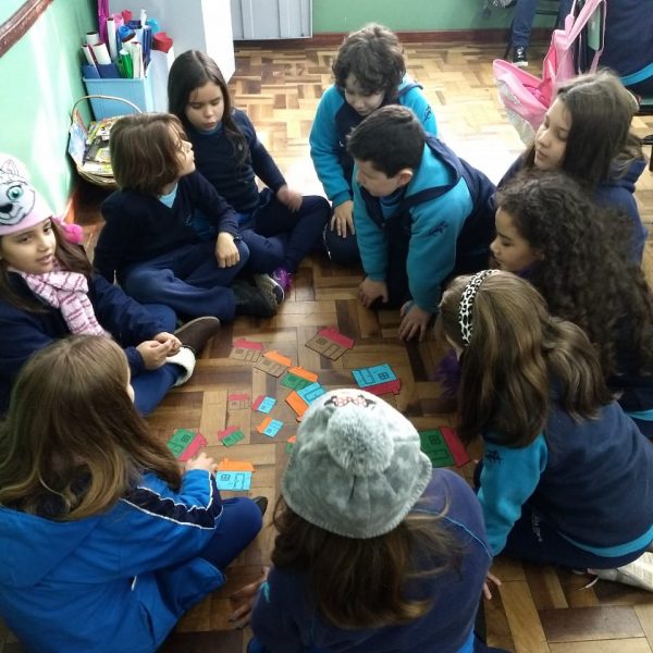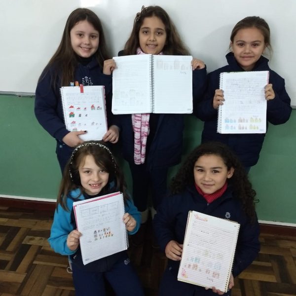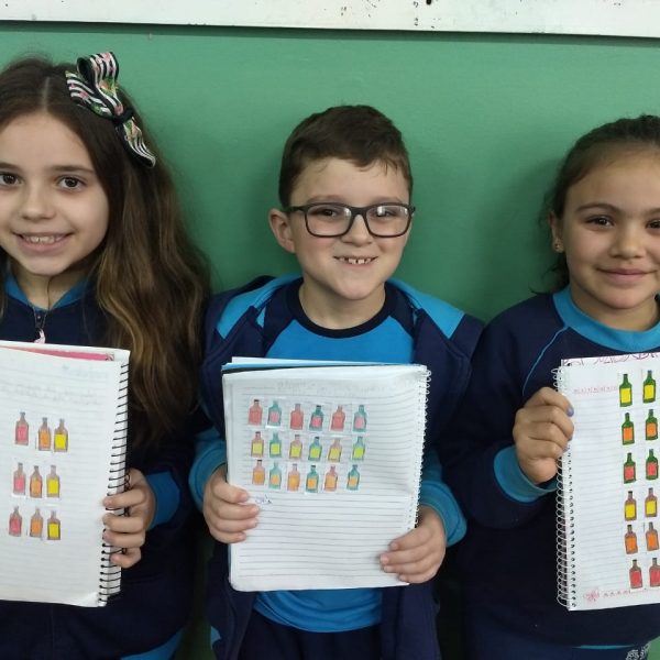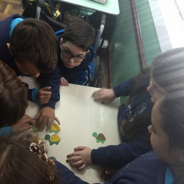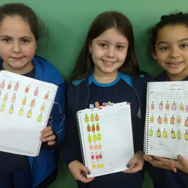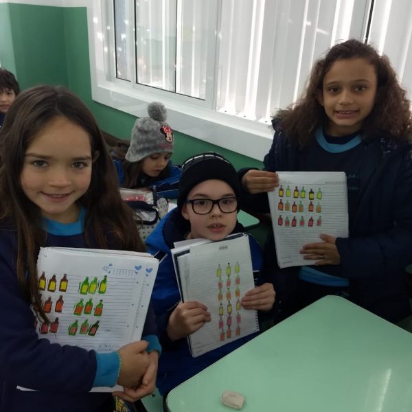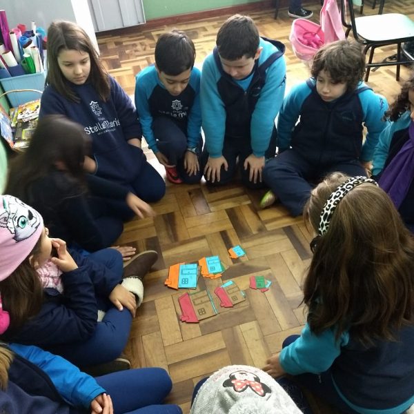Os alunos da turma 31 realizaram as atividades sobre as ideias da multiplicação, envolvendo, dentre outras questões, a combinatória, propostas no livro de matemática, desenvolvendo e testando hipóteses. Para incentivá-los ainda mais, e aprofundar importantes habilidades, a professora Gabrielle propiciou vivências riquíssimas, de análise, manuseio, observação, classificação e seriação de Jogos Estruturados. São jogos matemáticos, que visam a atenção e desenvolvimento do raciocínio lógico. O primeiro, foi o jogo das casinhas, com 18 peças (3 atributos: tamanho, cor do telhado e cor da casa). Depois, o jogo das tartarugas, com 12 peças (3 atributos: cor do corpo, cor do casco, com língua/sem língua). Por último, o jogo das garrafas (3 atributos: cor da garrafa, cor do rótulo, cor da tampa).