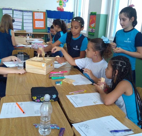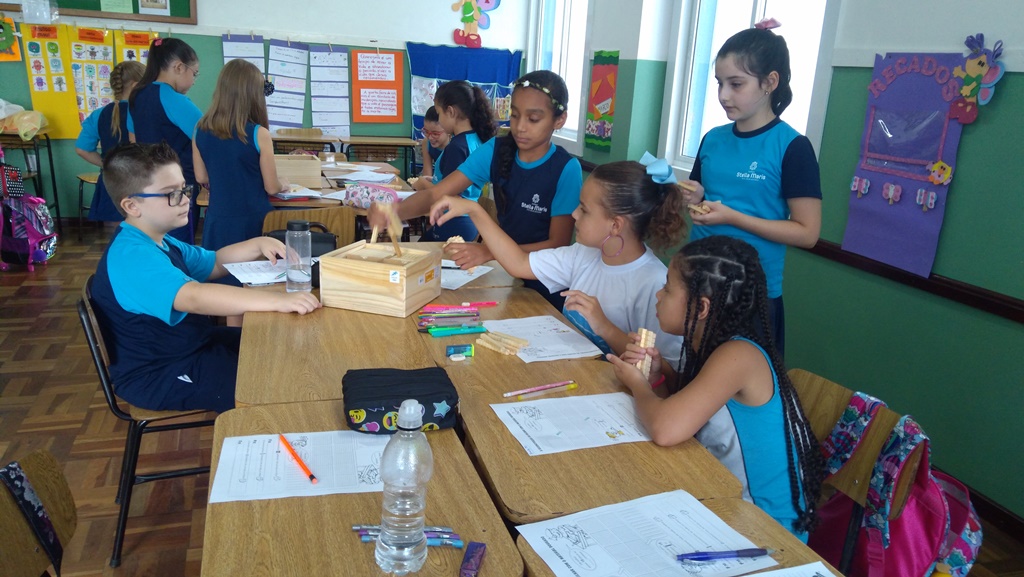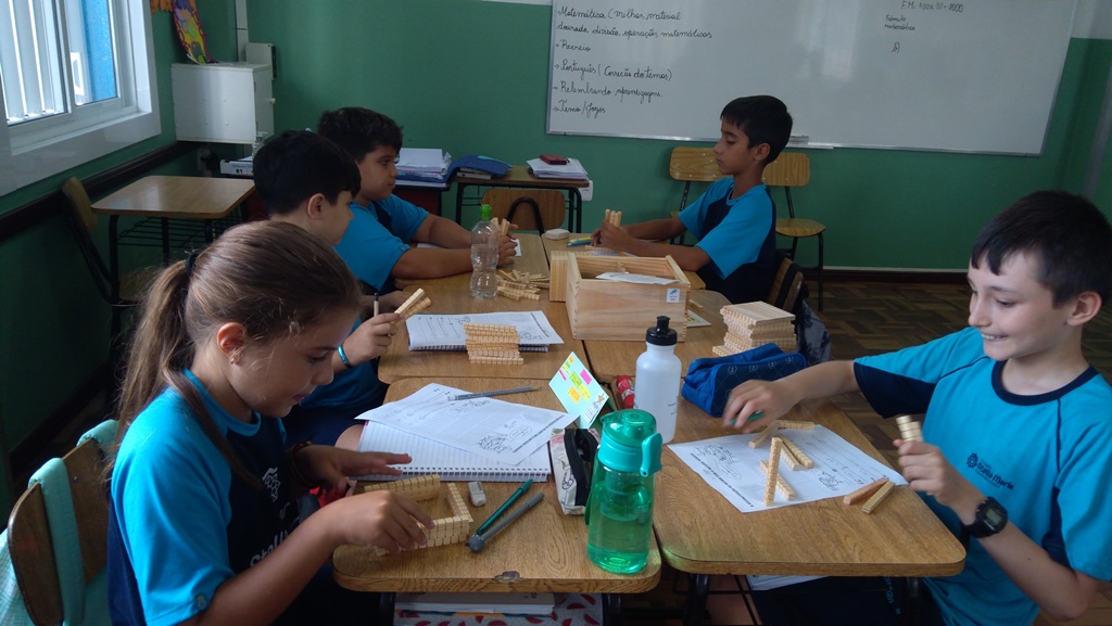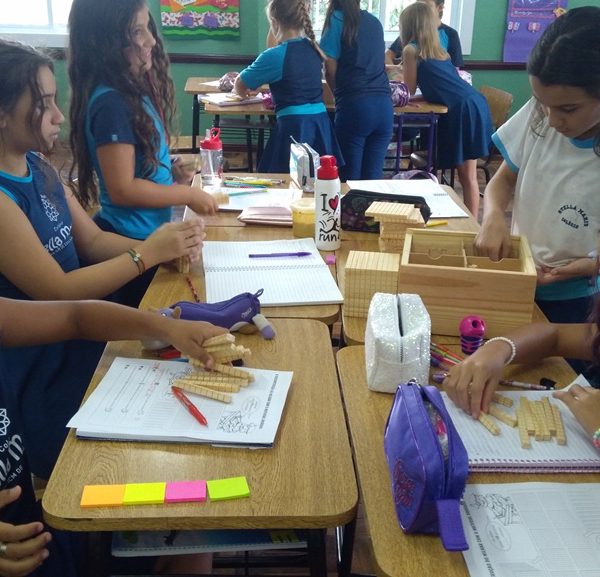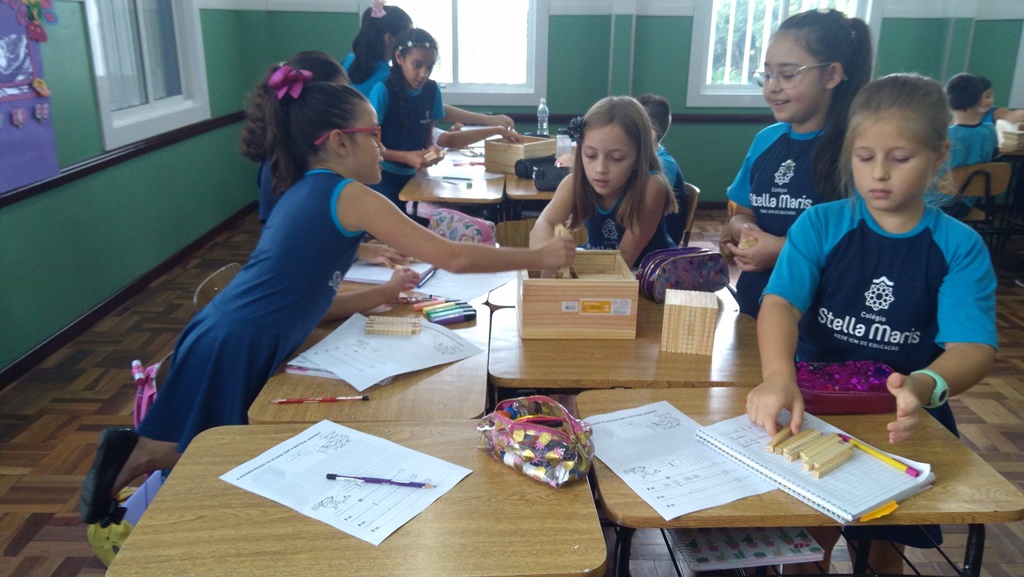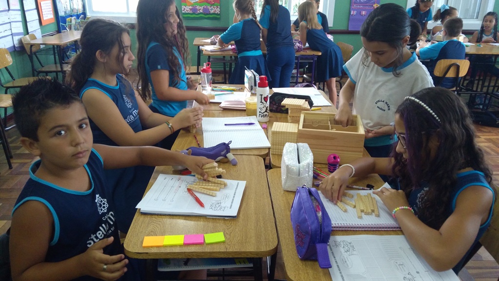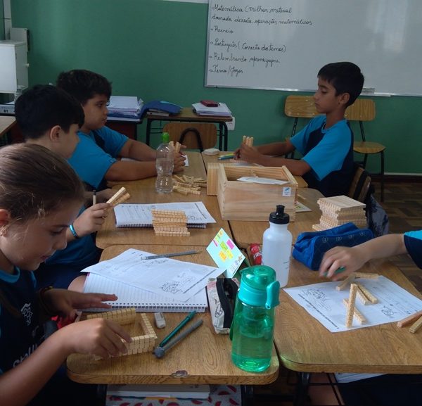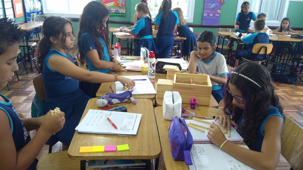 Os alunos da 43 utilizaram o material dourado para resolver operações e praticar o raciocínio matemático.