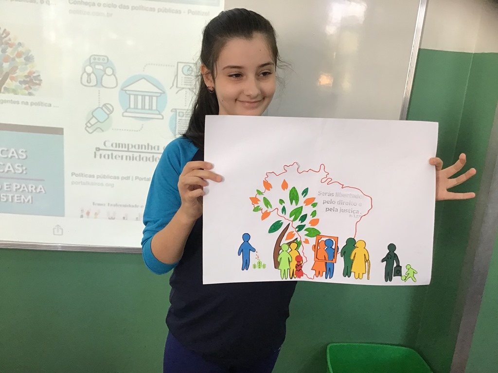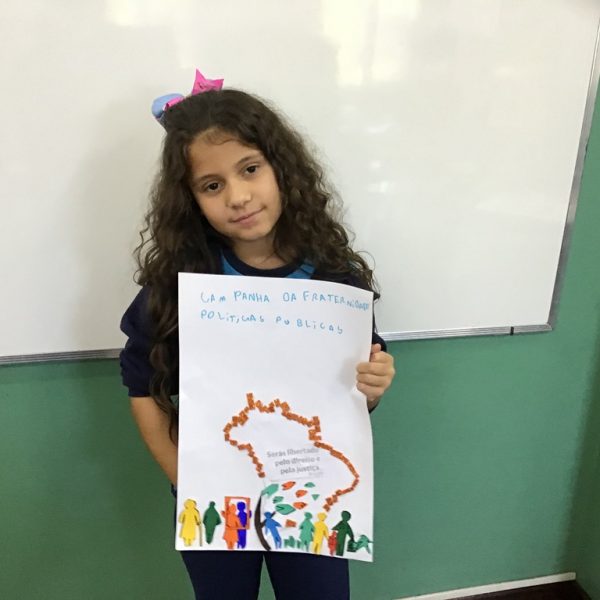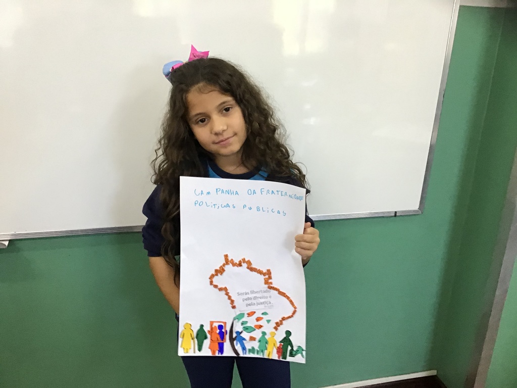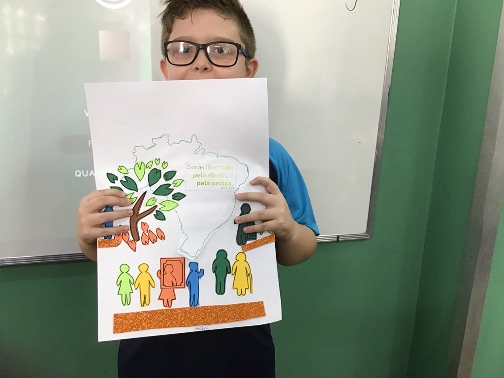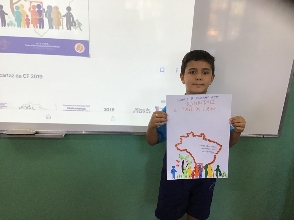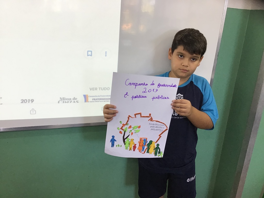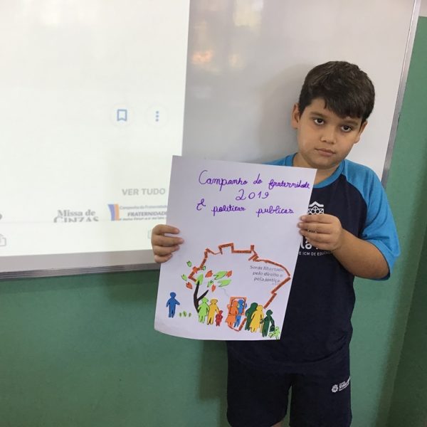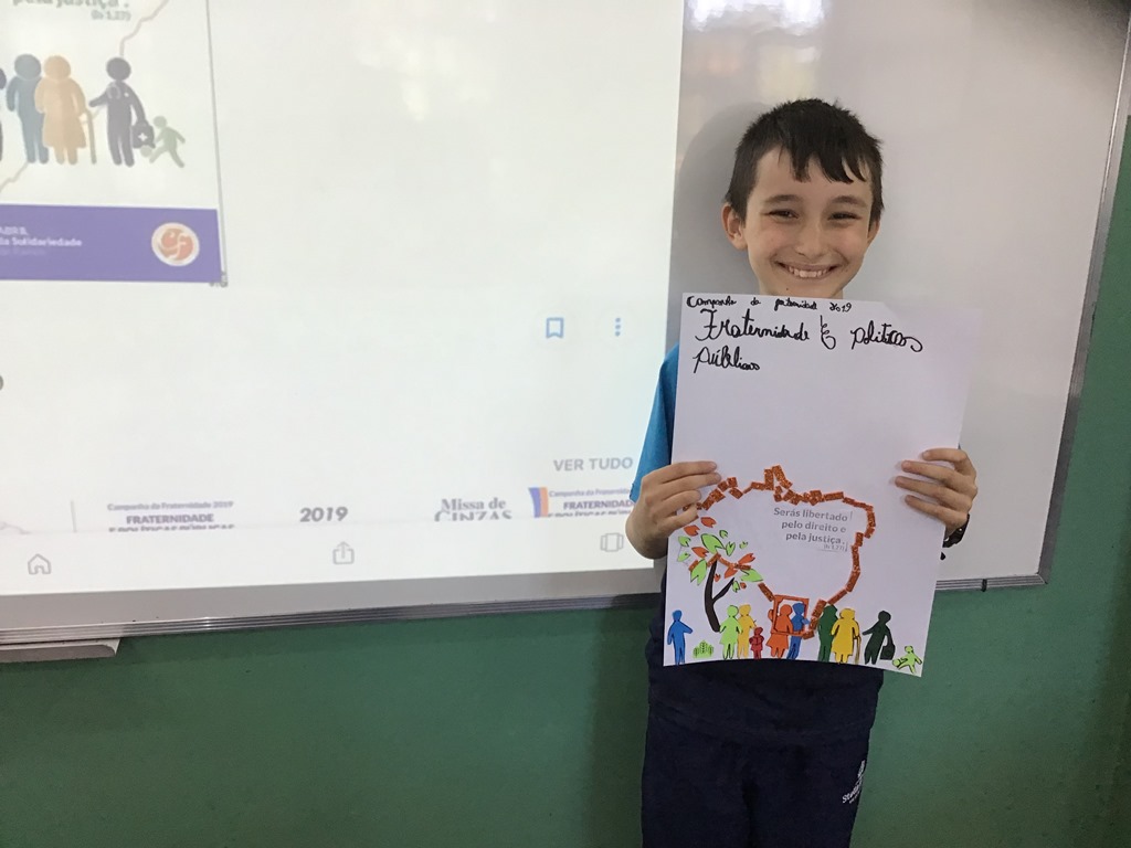 Os alunos da turma 43 construíram o painel da Campanha da Fraternidade. Durante a construção descobriram o significado de cada símbolo ilustrado. E juntos debateram sobre Políticas Públicas.