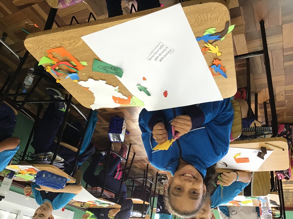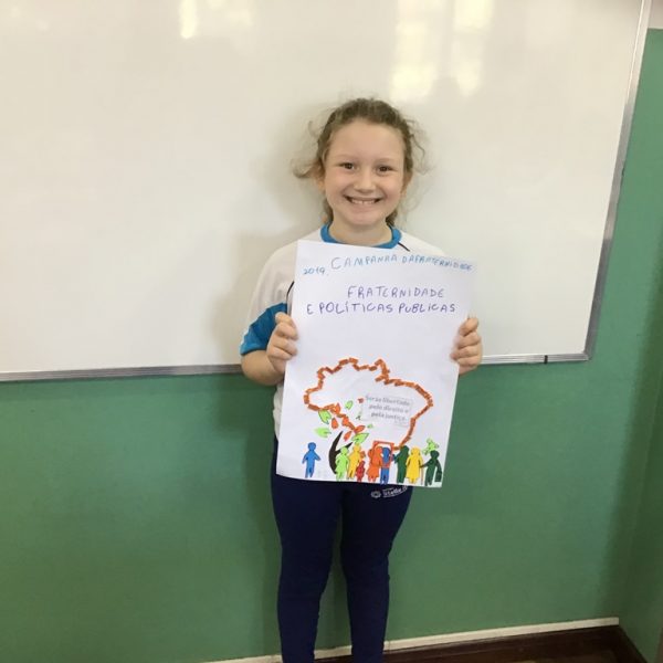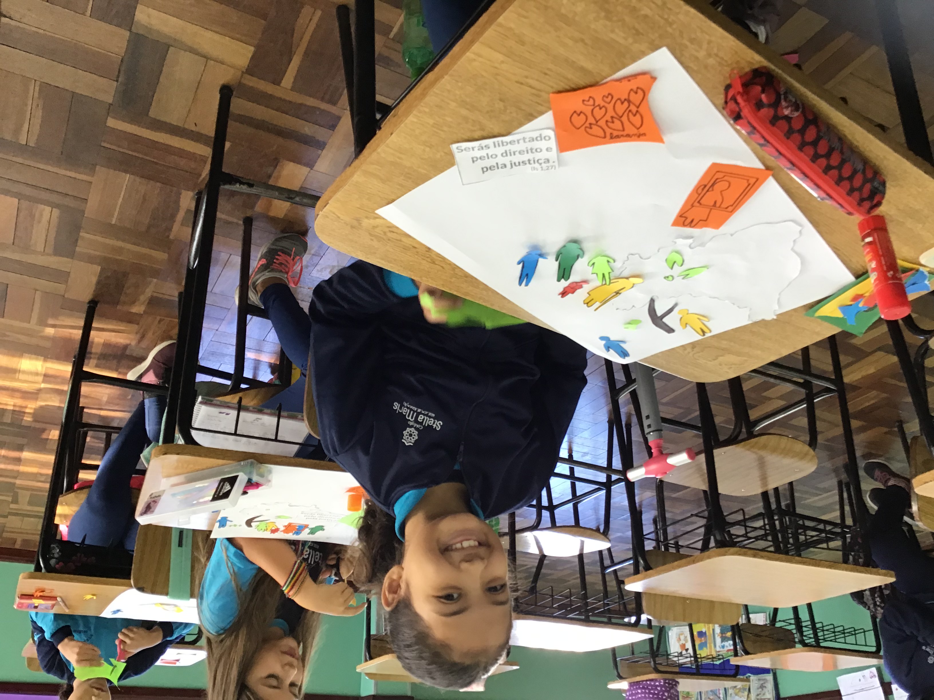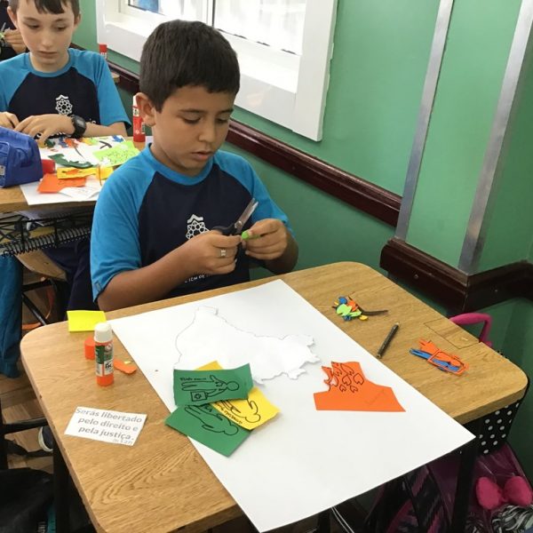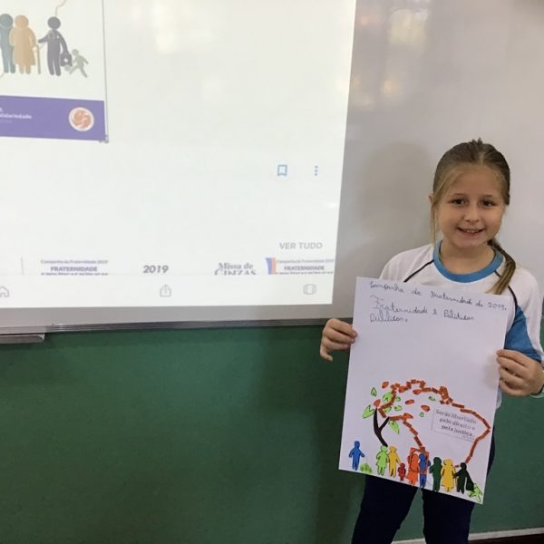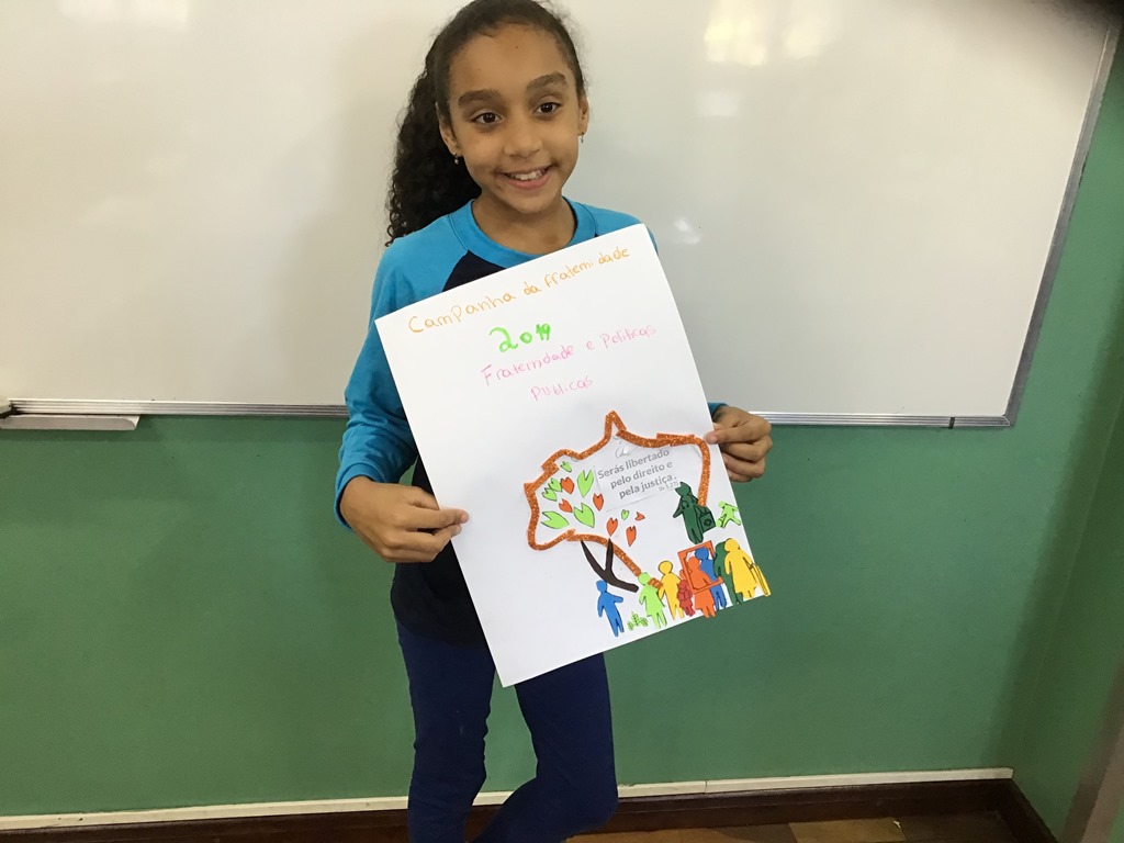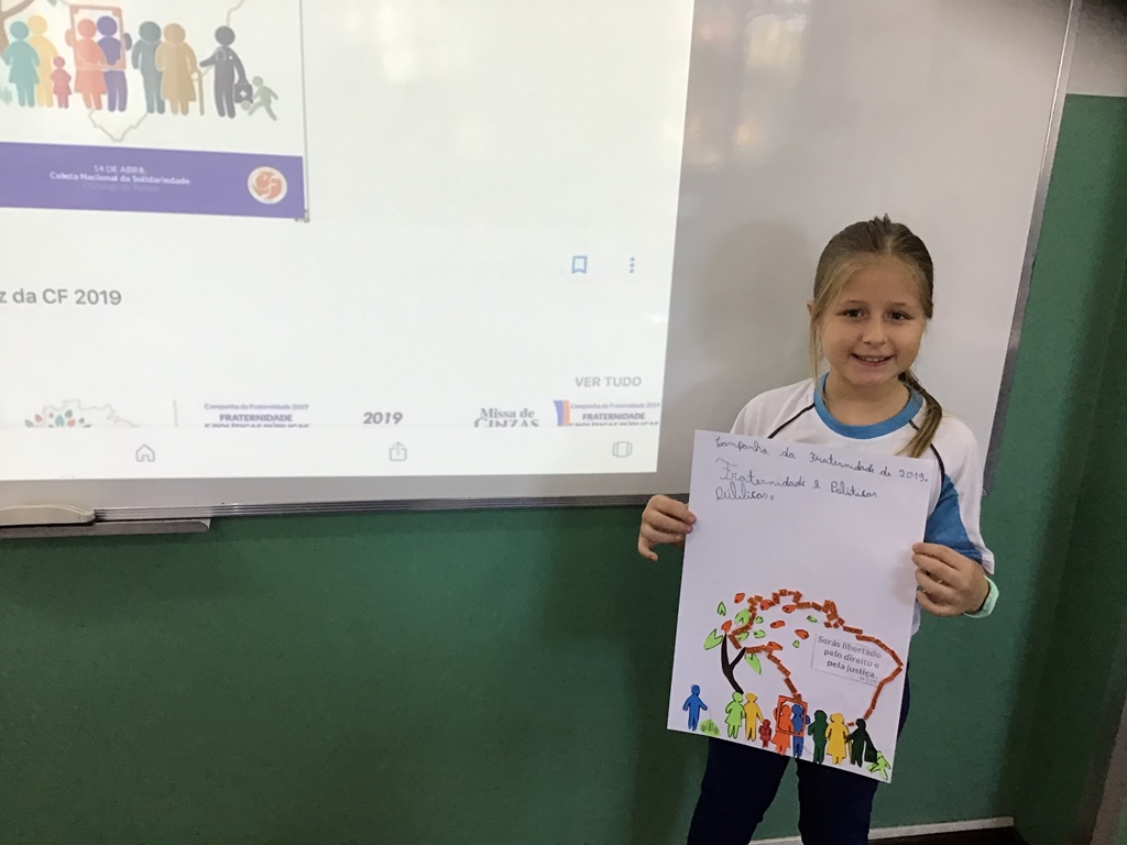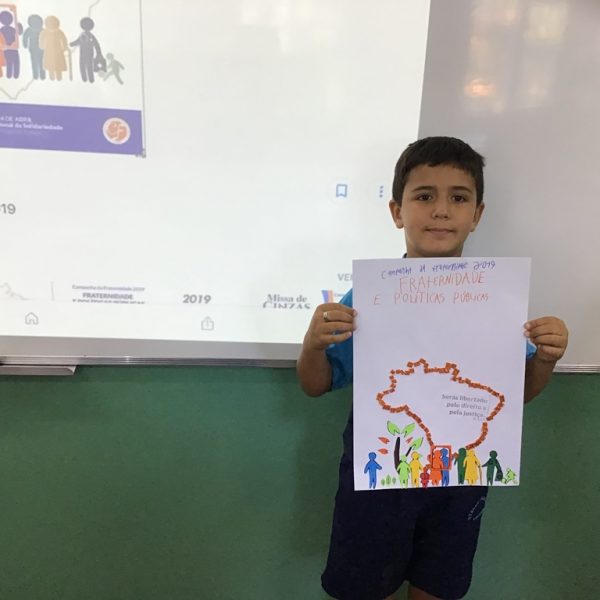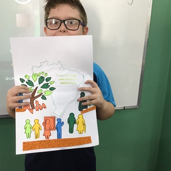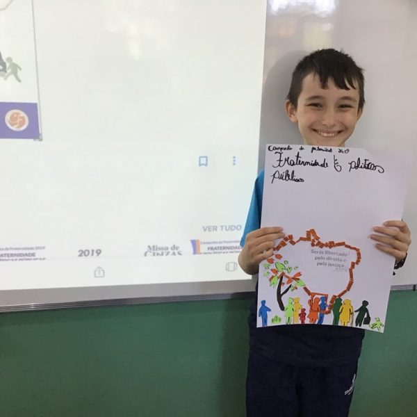 Os alunos da turma 43 construíram o painel da Campanha da Fraternidade. Durante a construção descobriram o significado de cada símbolo ilustrado. E juntos debateram sobre Políticas Públicas.