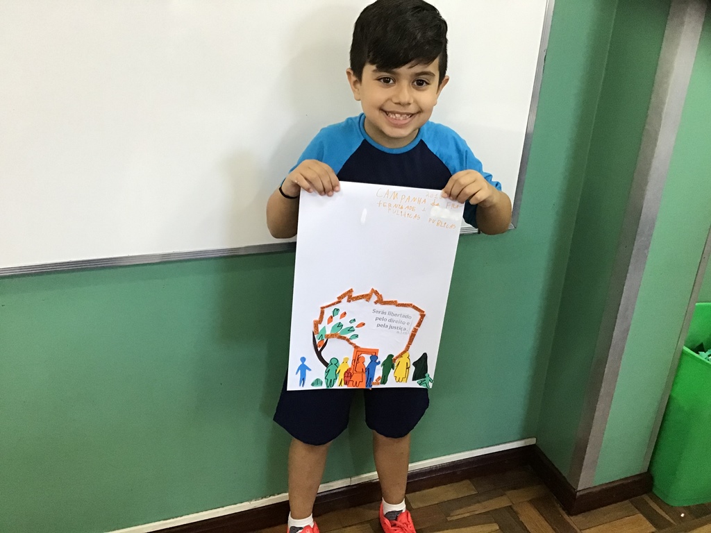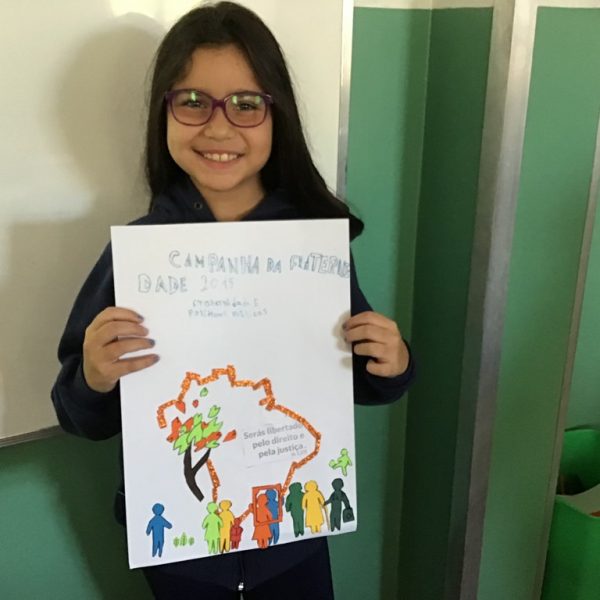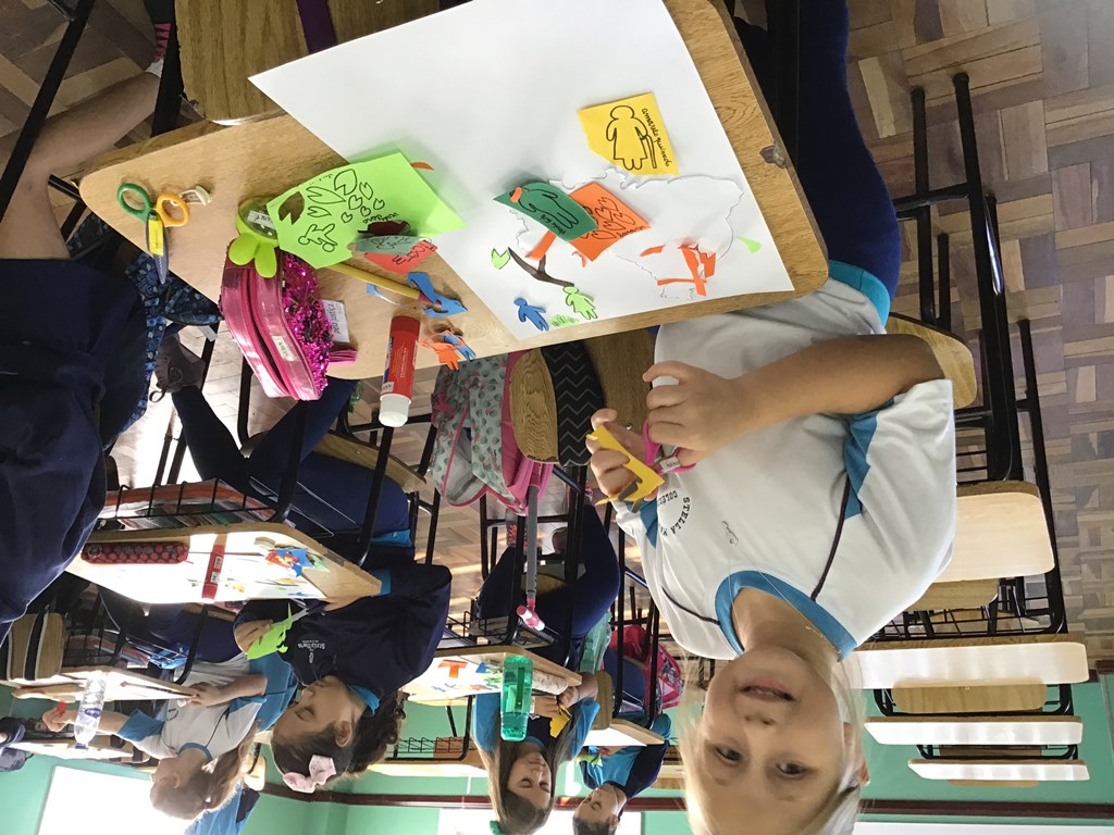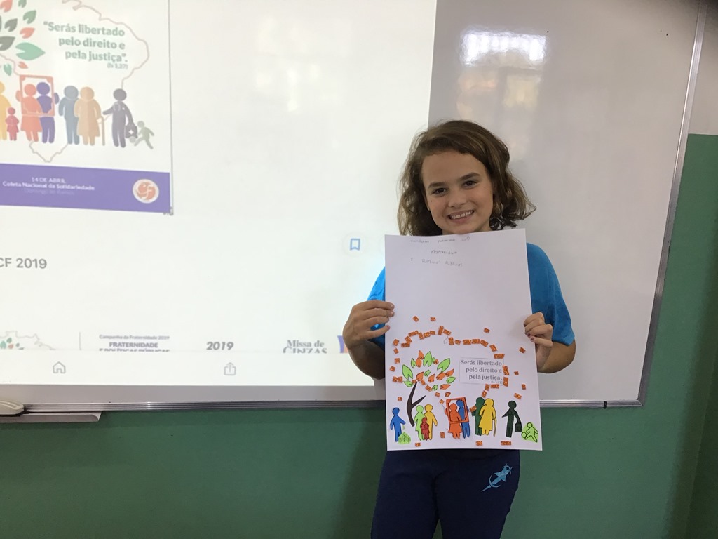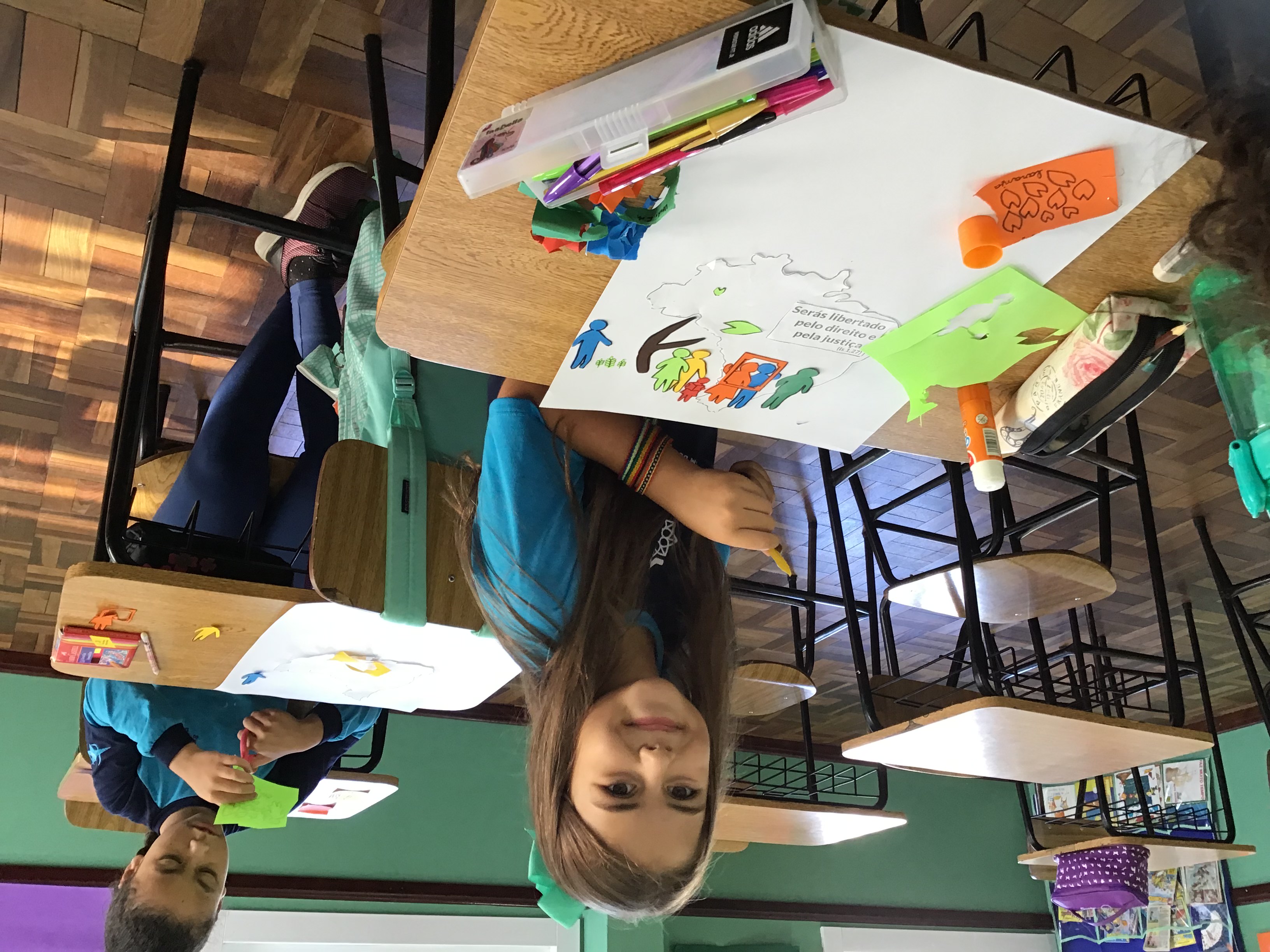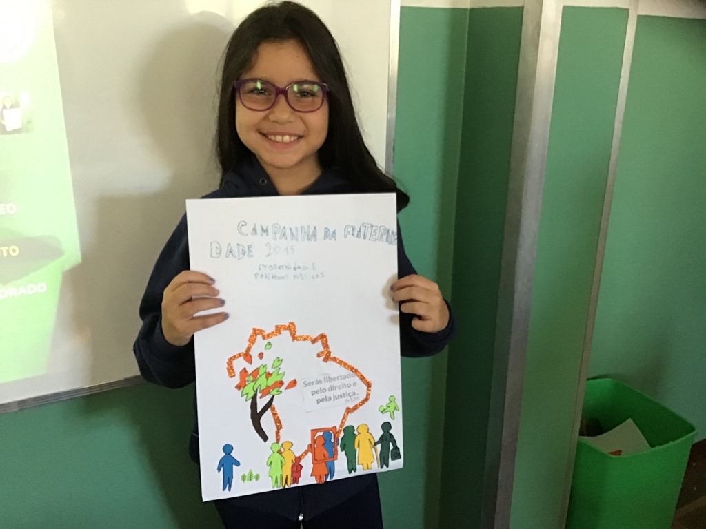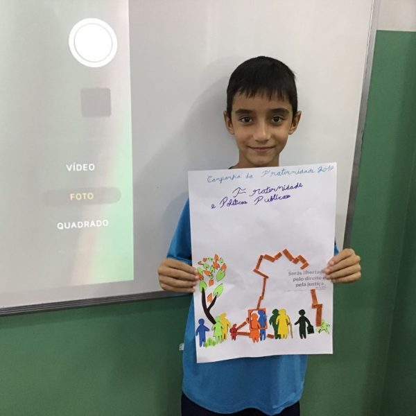 Os alunos da turma 43 construíram o painel da Campanha da Fraternidade. Durante a construção descobriram o significado de cada símbolo ilustrado. E juntos debateram sobre Políticas Públicas.