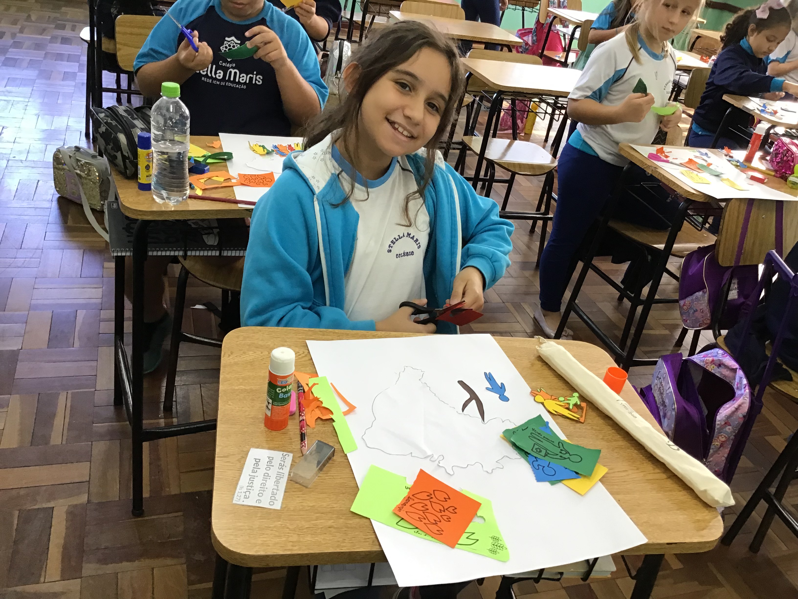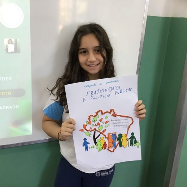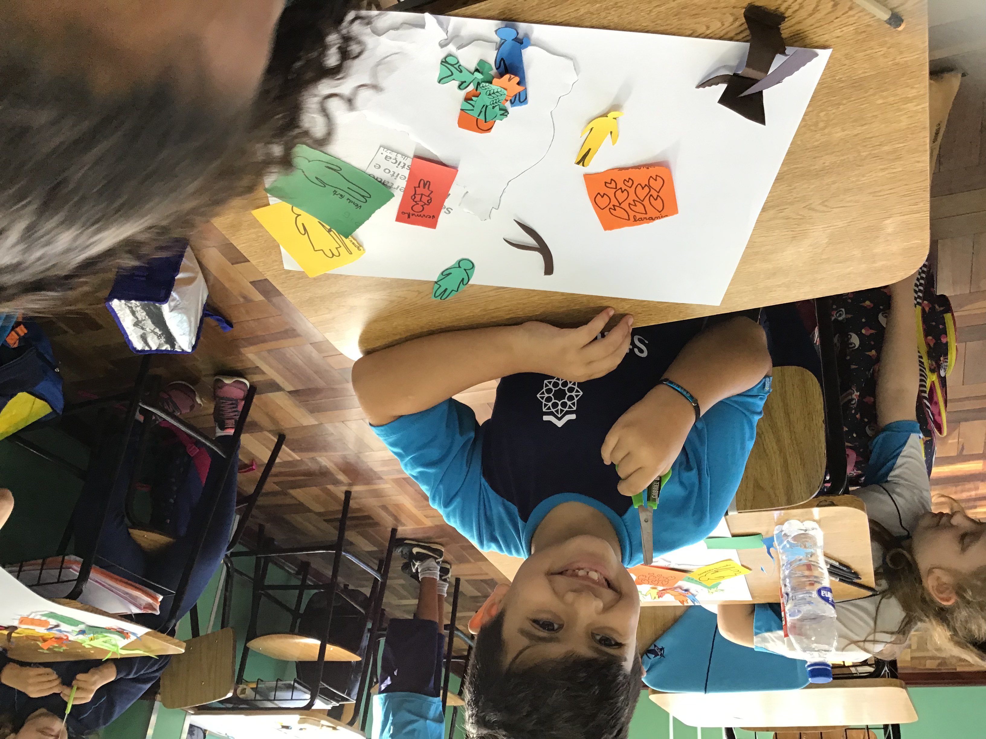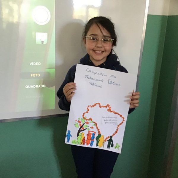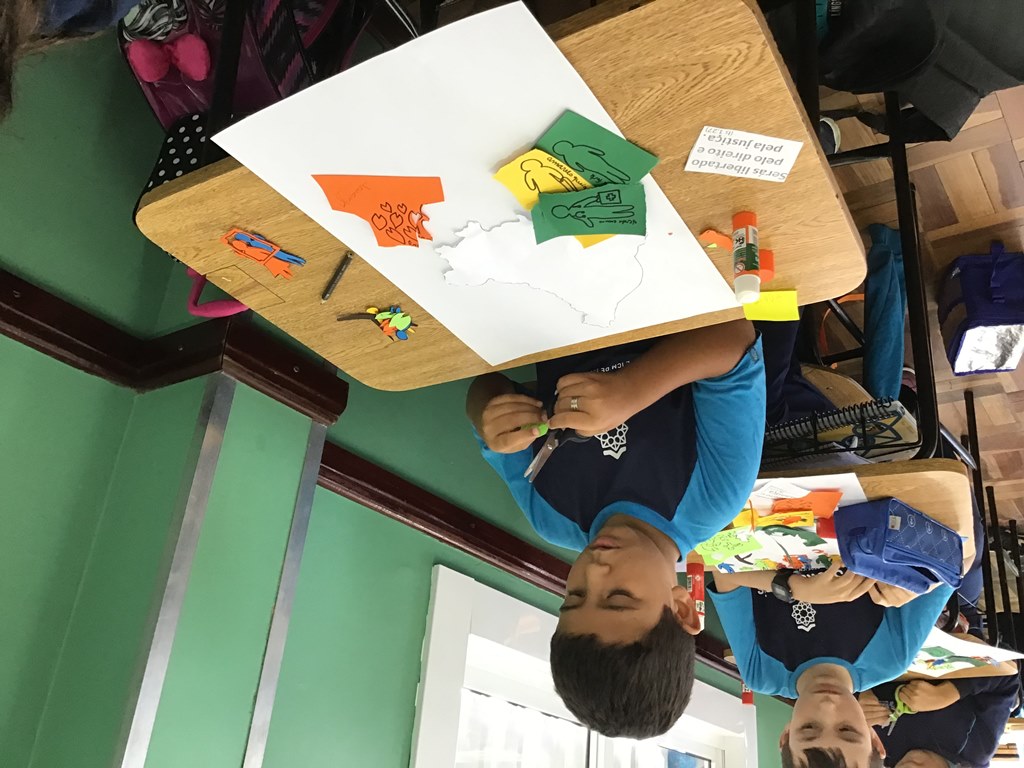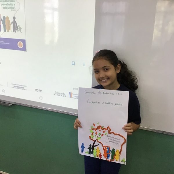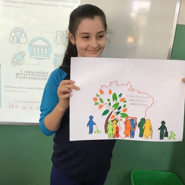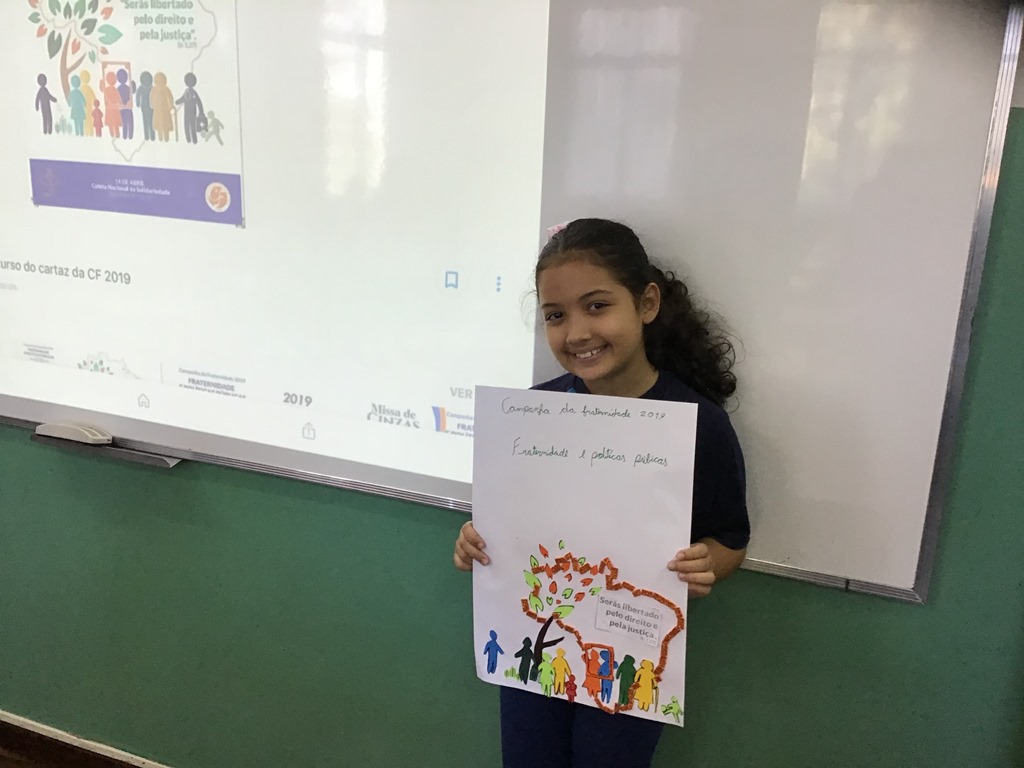 Os alunos da turma 43 construíram o painel da Campanha da Fraternidade. Durante a construção descobriram o significado de cada símbolo ilustrado. E juntos debateram sobre Políticas Públicas.