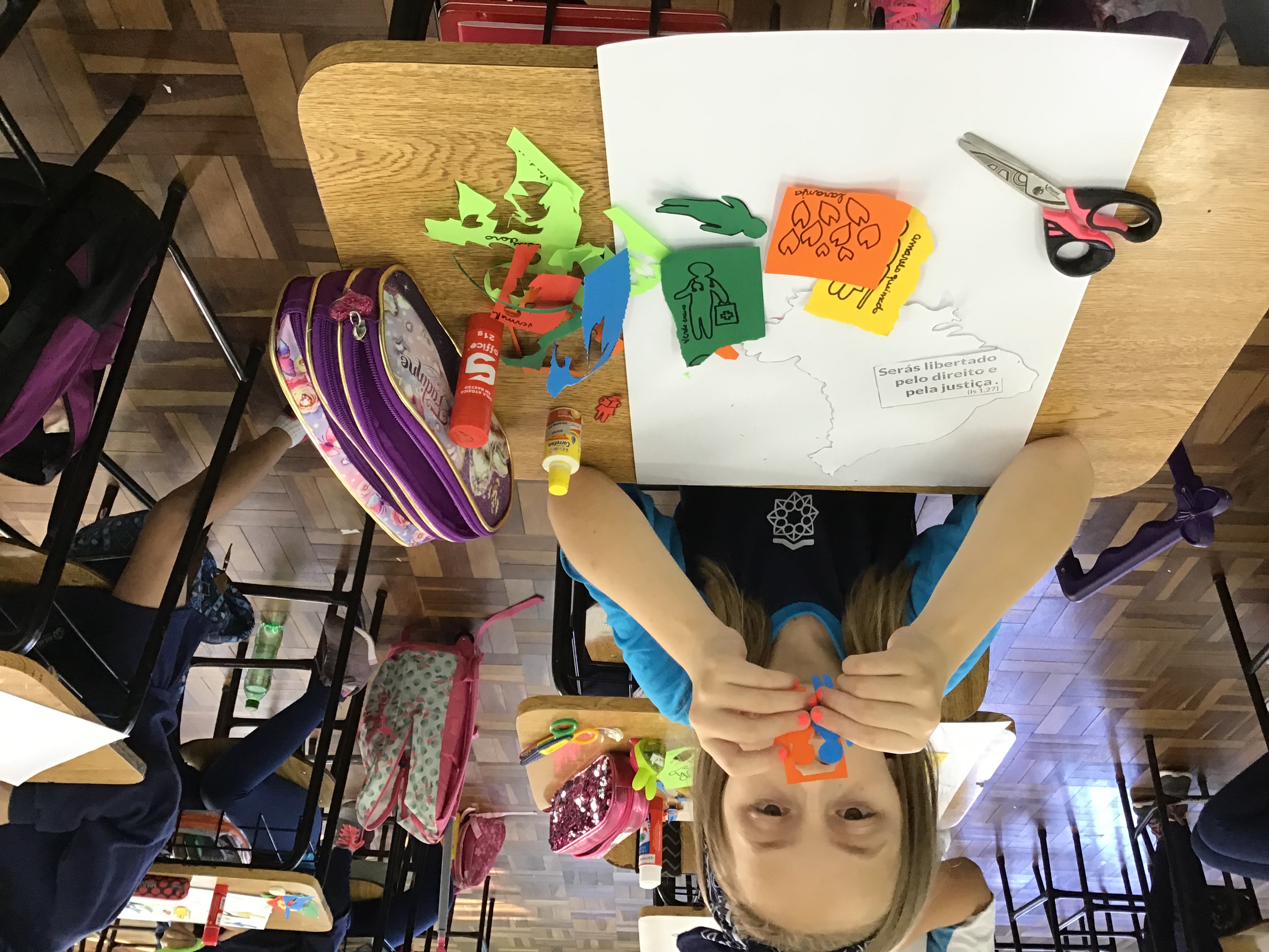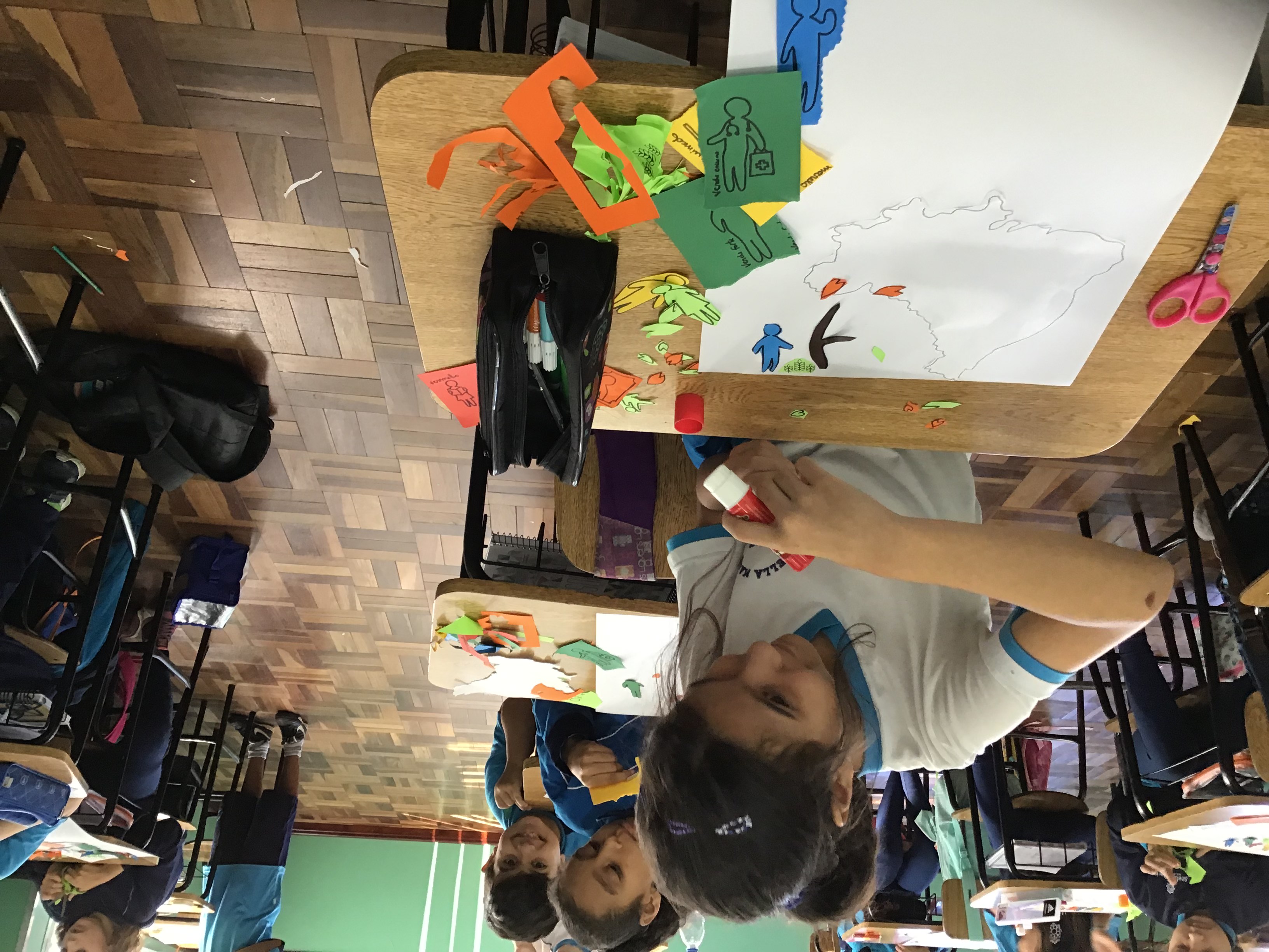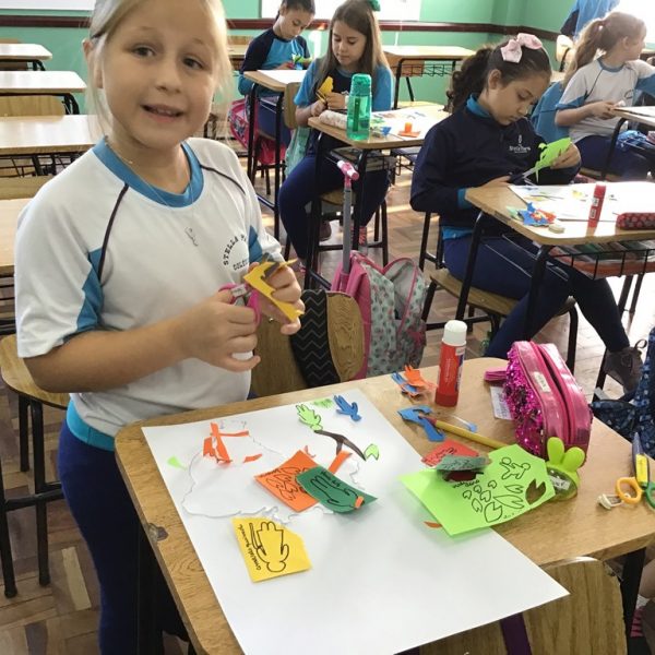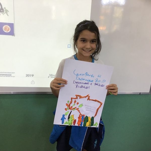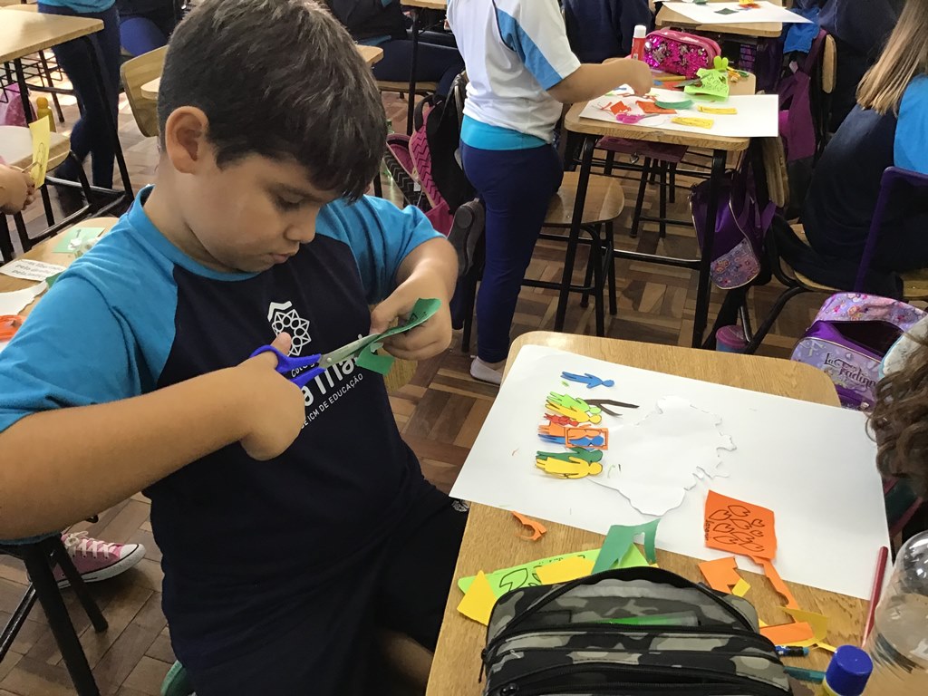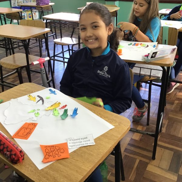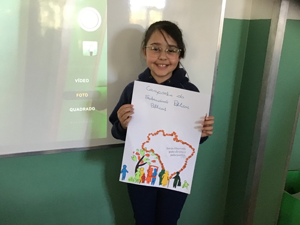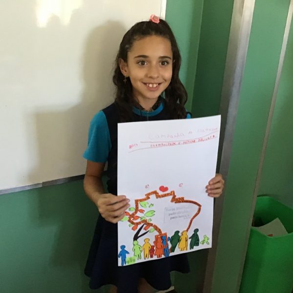 Os alunos da turma 43 construíram o painel da Campanha da Fraternidade. Durante a construção descobriram o significado de cada símbolo ilustrado. E juntos debateram sobre Políticas Públicas.