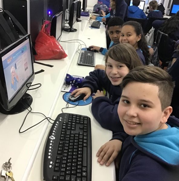 A turma 52 realizou na informática uma atividade do livro Trajeto “i”, com diversão desafiaram o gênio virtual Akinator.