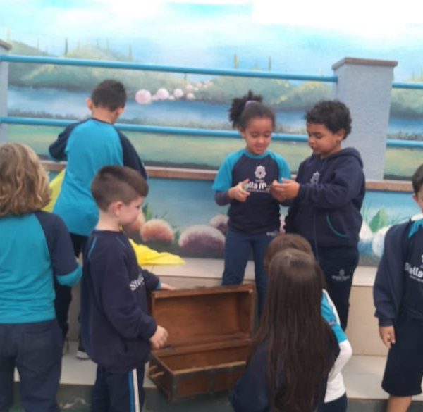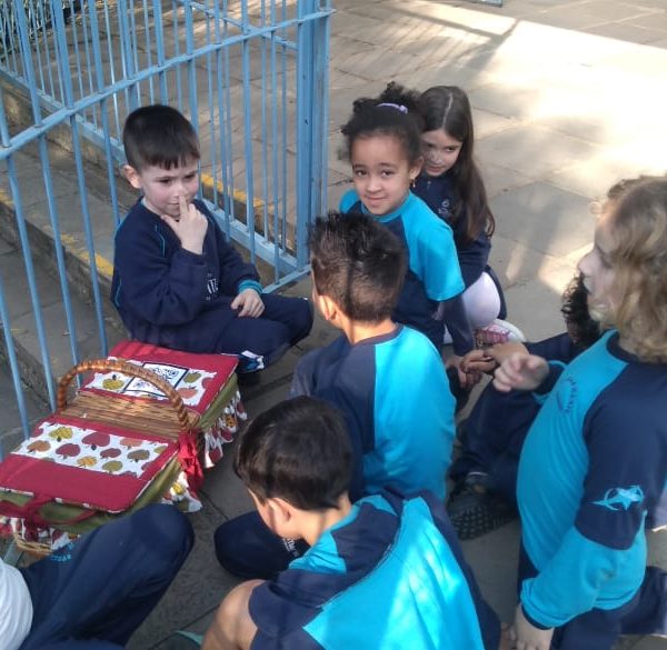 As turminhas de Pré 2 estão vivenciando atividades voltadas ao Folclore Brasileiro. Essa semana nossos pequenos procuraram pistas deixadas pela escola, por meio de QR Codes para encontrar o Saci Pererê. O personagem, muito danado, passou no Sítio do Pica Pau Amarelo e buscou os bolinhos de chuva da Tia Nastacia para presentear os novos amigos.