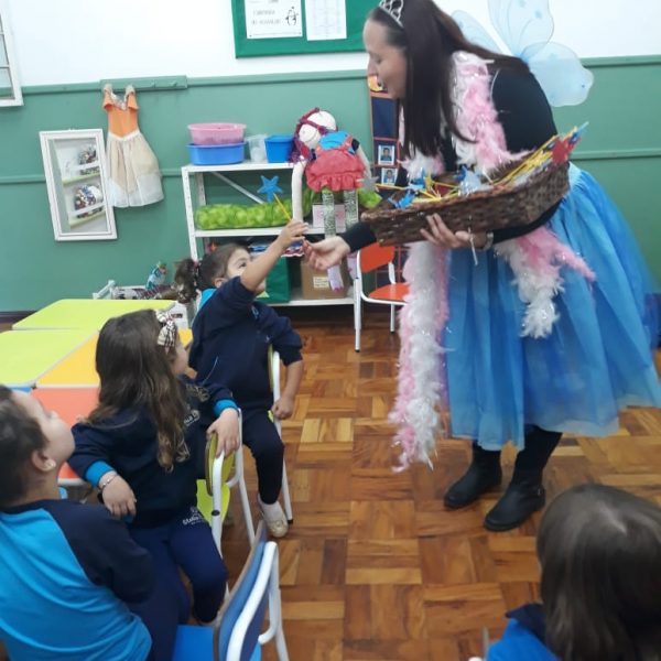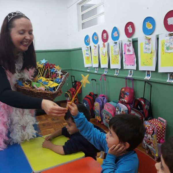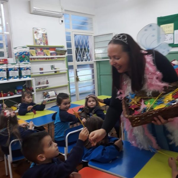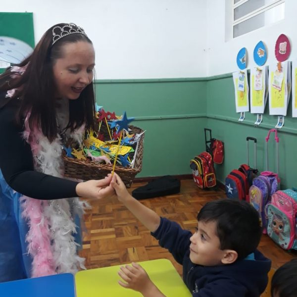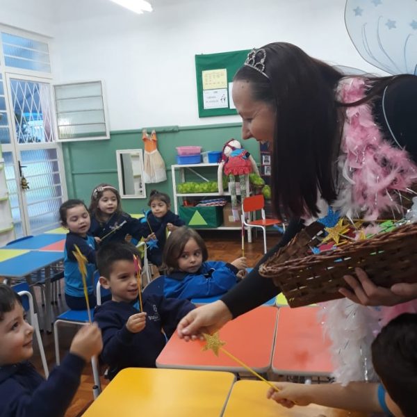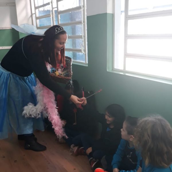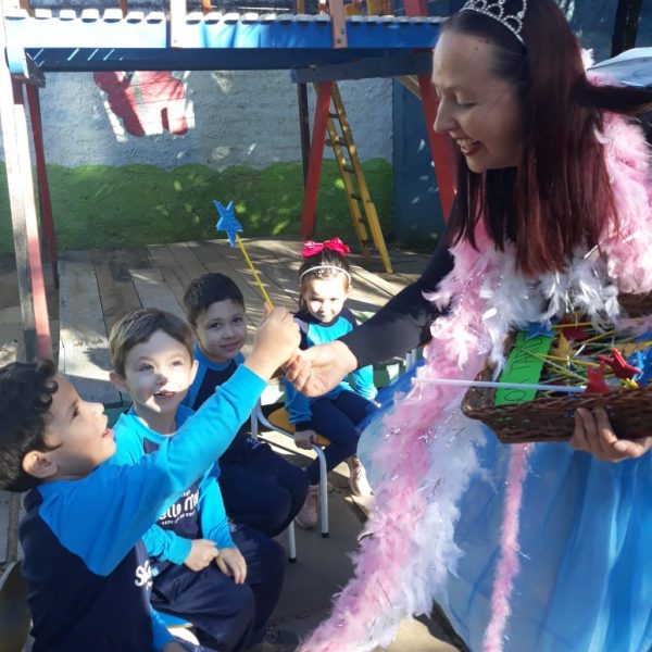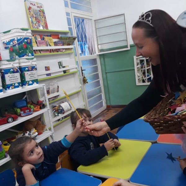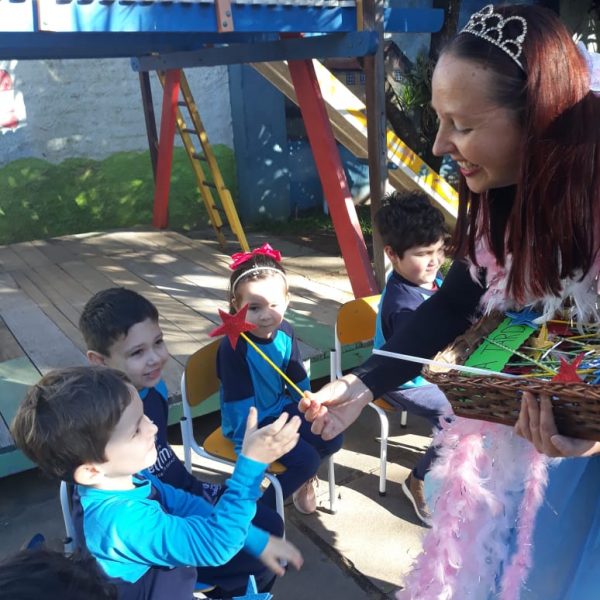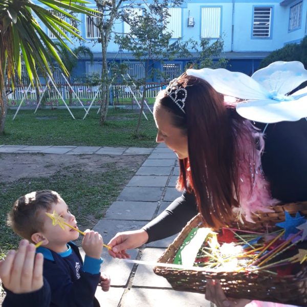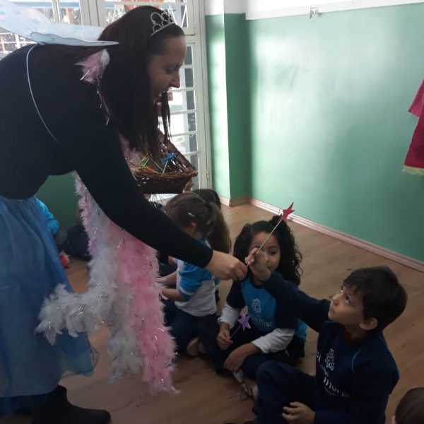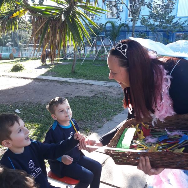 As turmas de Educação Infantil receberam uma visita muito especial, lá do Reino Encantado: a Rainha das Fadas! Ela veio com uma missão muito especial: espalhar as palavras mágicas por todas as turmas. Cada turma recebeu a tarefa de descobrir como e quando devem usar cada palavra recebida. Após, as crianças ganharam varinhas mágicas para guardarem este momento no coração.