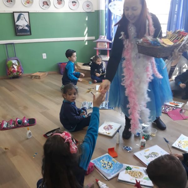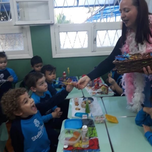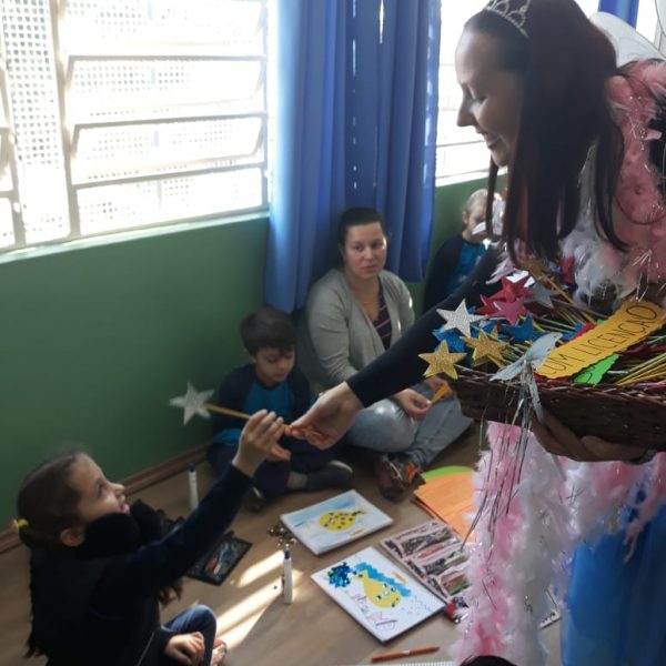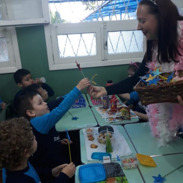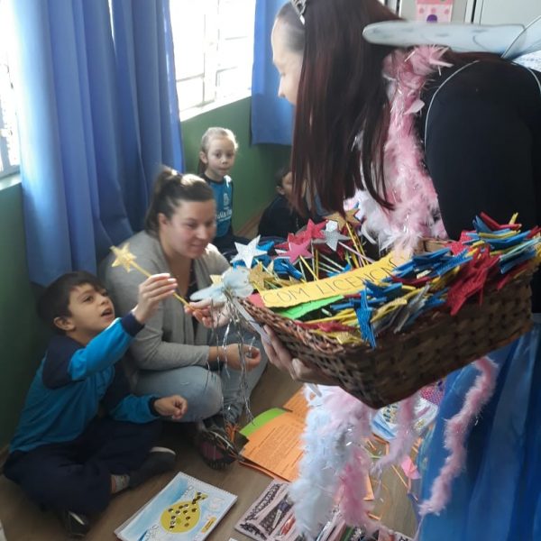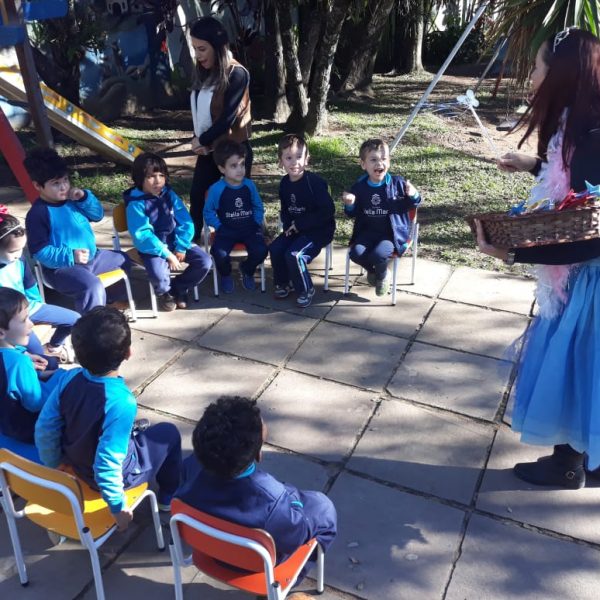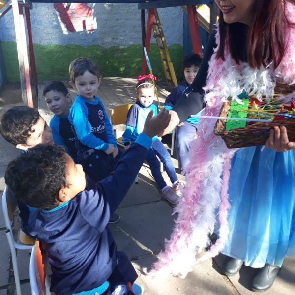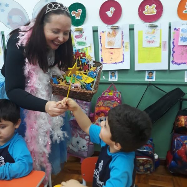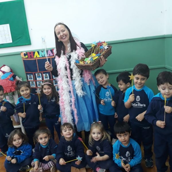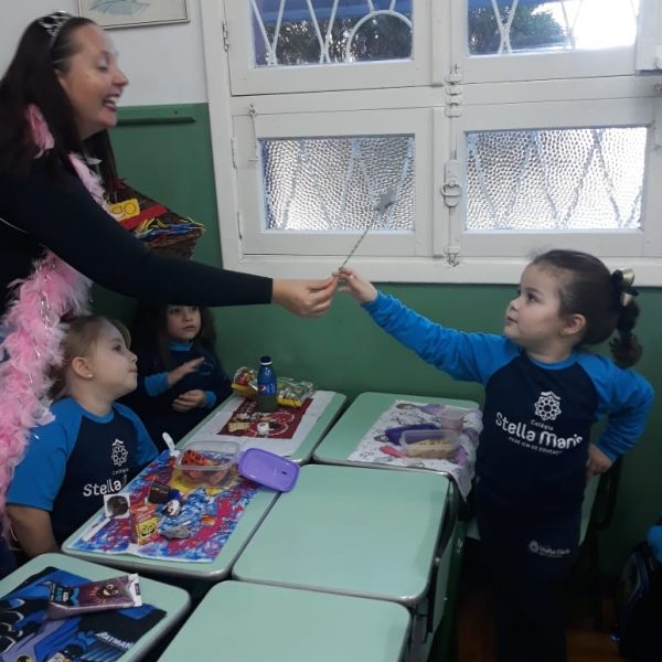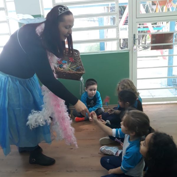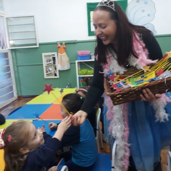 As turmas de Educação Infantil receberam uma visita muito especial, lá do Reino Encantado: a Rainha das Fadas! Ela veio com uma missão muito especial: espalhar as palavras mágicas por todas as turmas. Cada turma recebeu a tarefa de descobrir como e quando devem usar cada palavra recebida. Após, as crianças ganharam varinhas mágicas para guardarem este momento no coração.