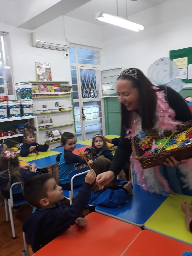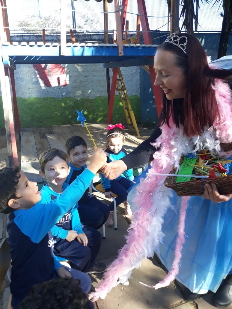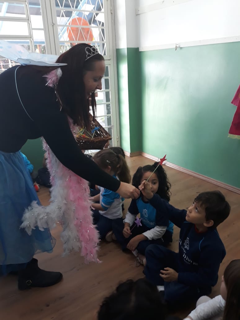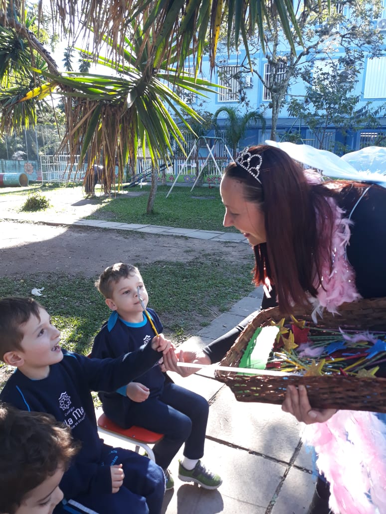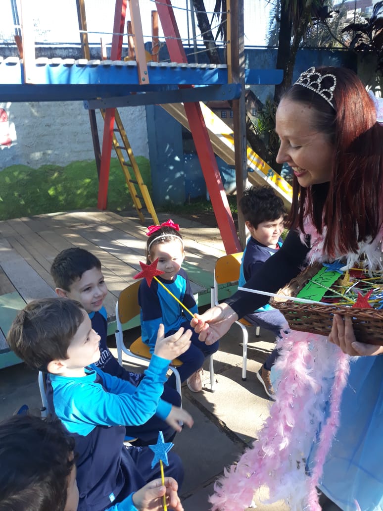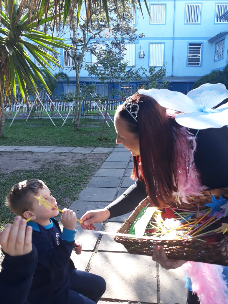 As turmas de Educação Infantil receberam uma visita muito especial, lá do Reino Encantado: a Rainha das Fadas! Ela veio com uma missão muito especial: espalhar as palavras mágicas por todas as turmas. Cada turma recebeu a tarefa de descobrir como e quando devem usar cada palavra recebida. Após, as crianças ganharam varinhas mágicas para guardarem este momento no coração.