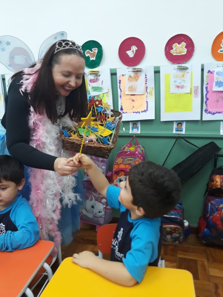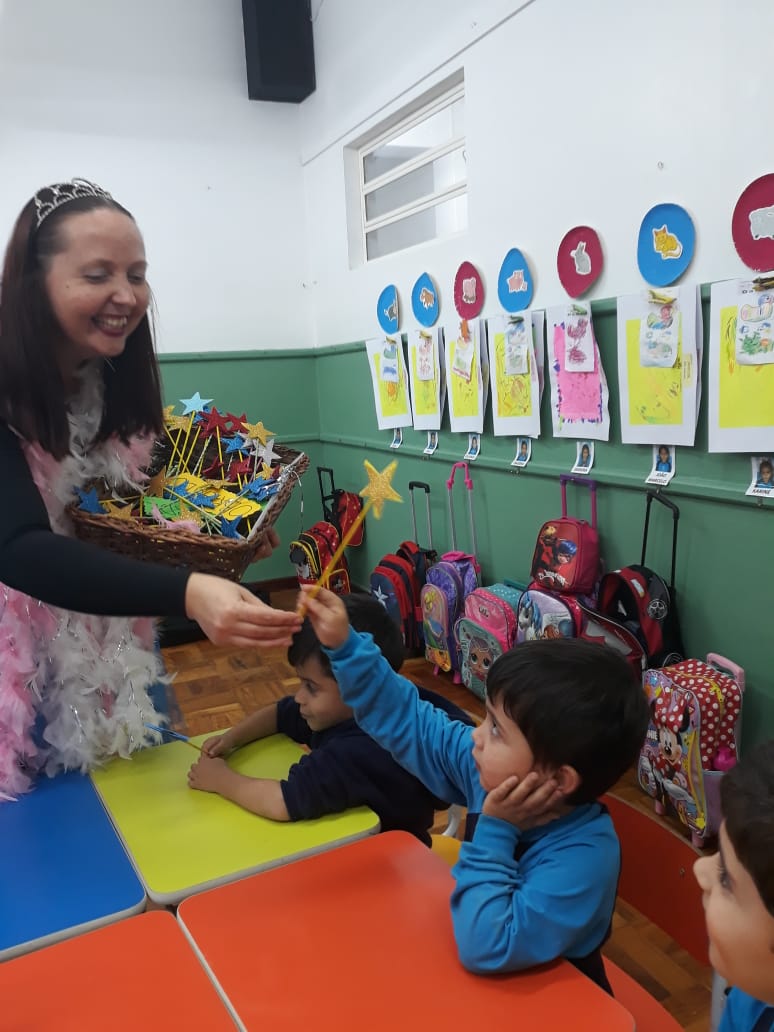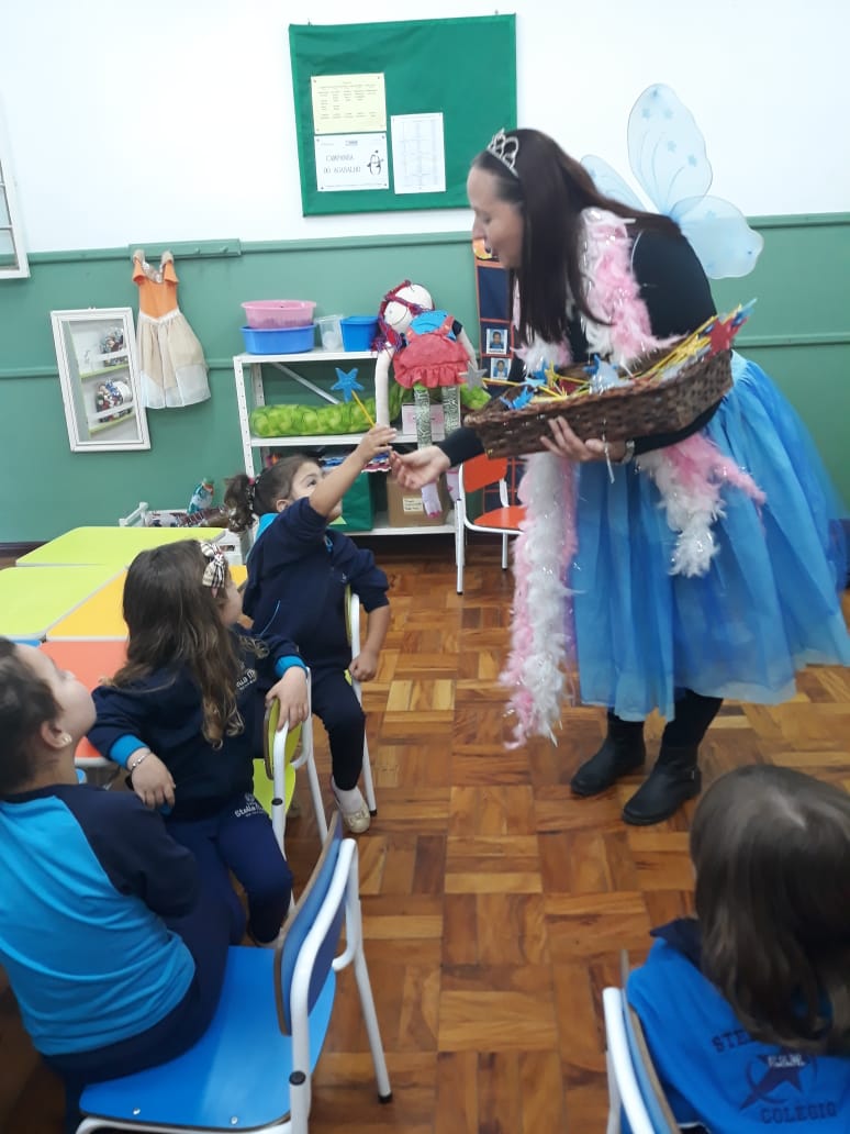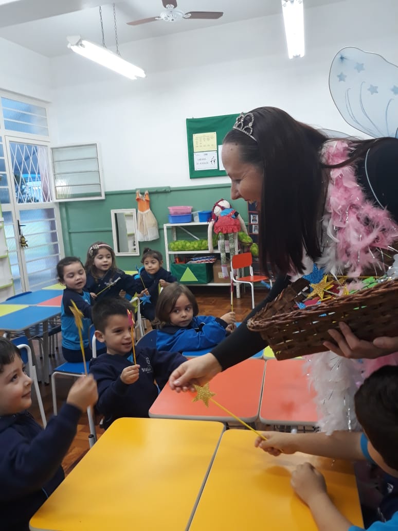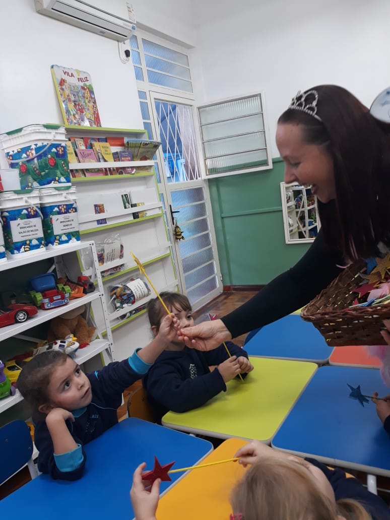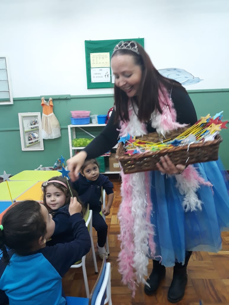 As turmas de Educação Infantil receberam uma visita muito especial, lá do Reino Encantado: a Rainha das Fadas! Ela veio com uma missão muito especial: espalhar as palavras mágicas por todas as turmas. Cada turma recebeu a tarefa de descobrir como e quando devem usar cada palavra recebida. Após, as crianças ganharam varinhas mágicas para guardarem este momento no coração.