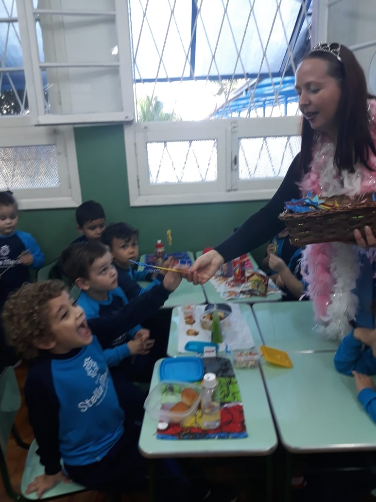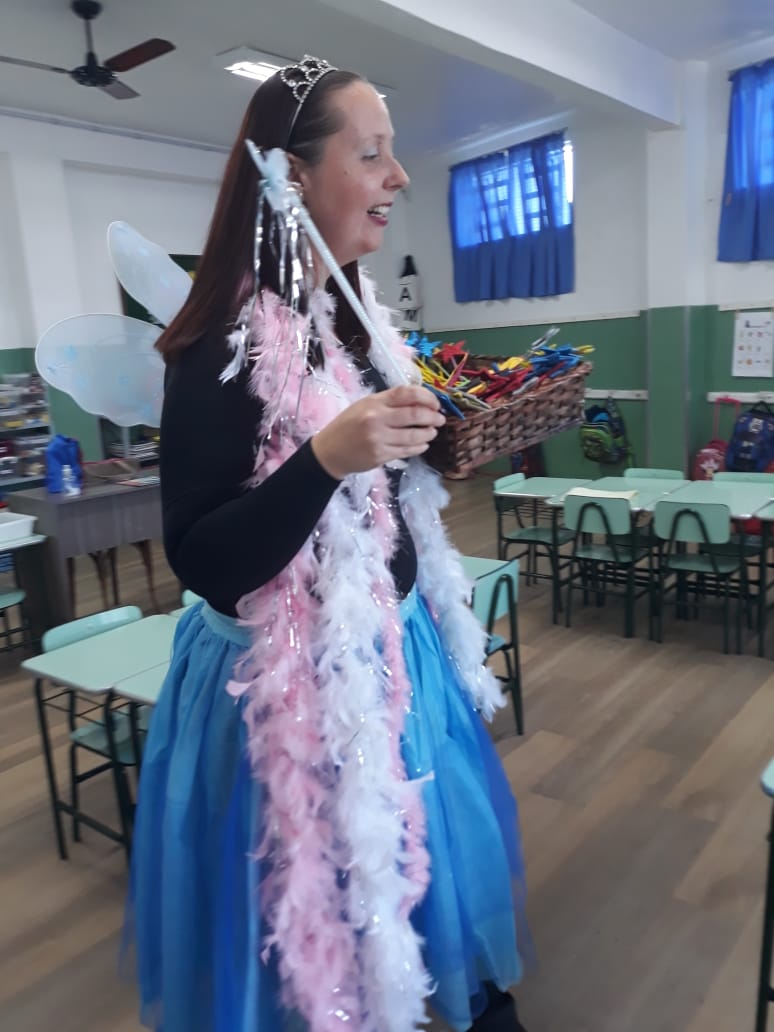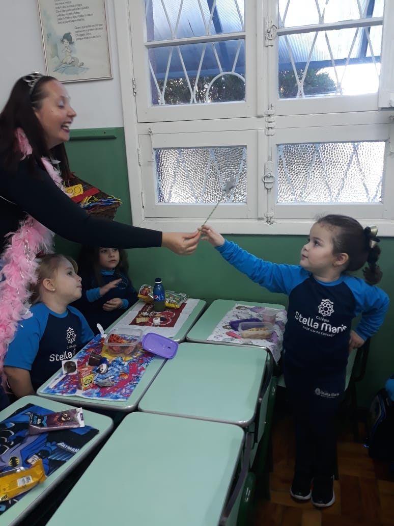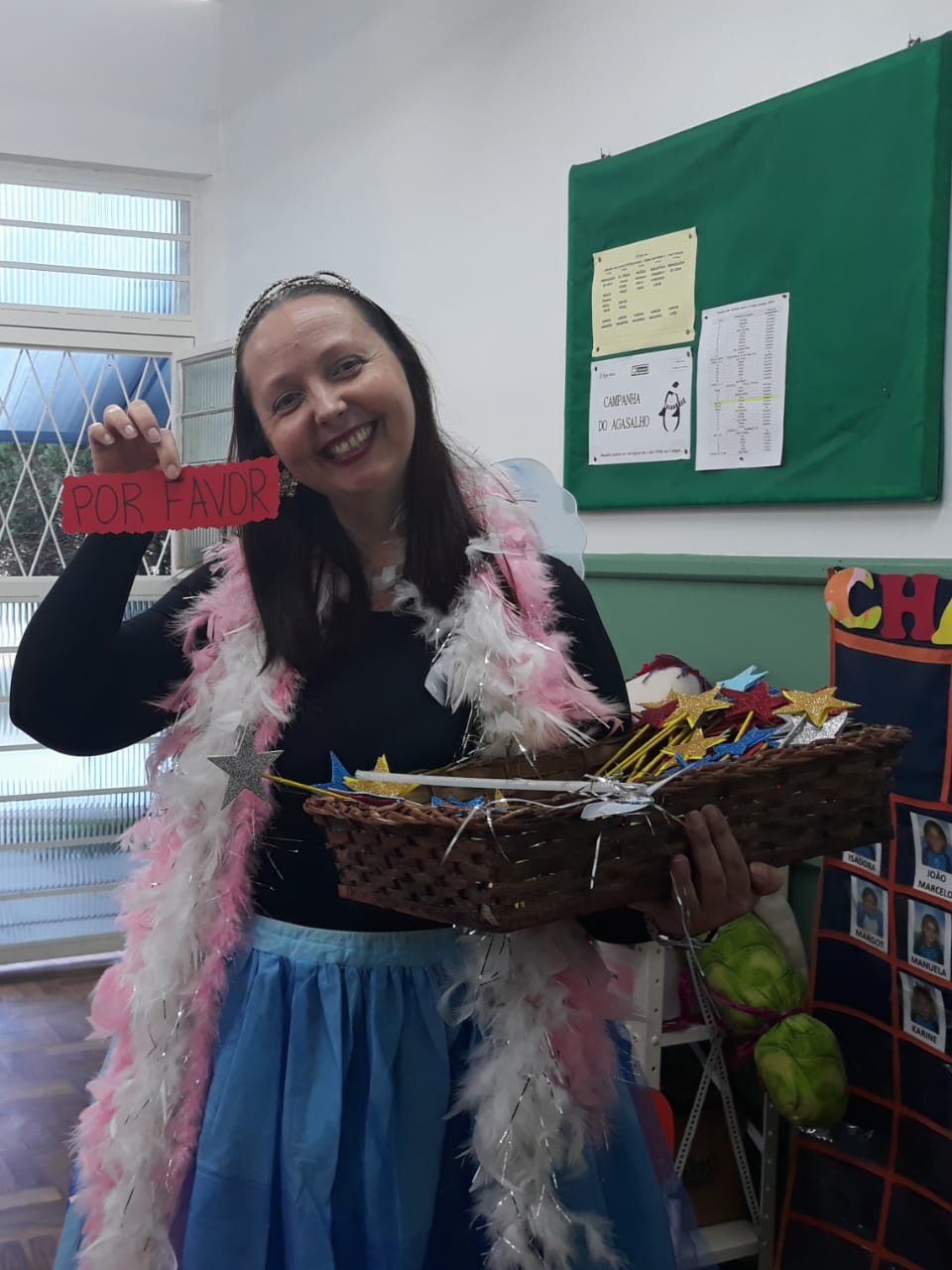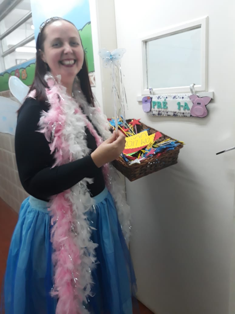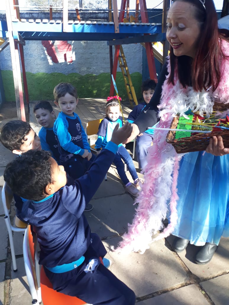 As turmas de Educação Infantil receberam uma visita muito especial, lá do Reino Encantado: a Rainha das Fadas! Ela veio com uma missão muito especial: espalhar as palavras mágicas por todas as turmas. Cada turma recebeu a tarefa de descobrir como e quando devem usar cada palavra recebida. Após, as crianças ganharam varinhas mágicas para guardarem este momento no coração.