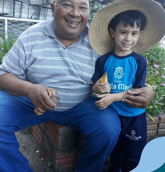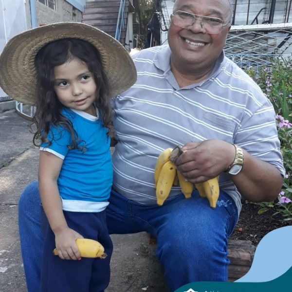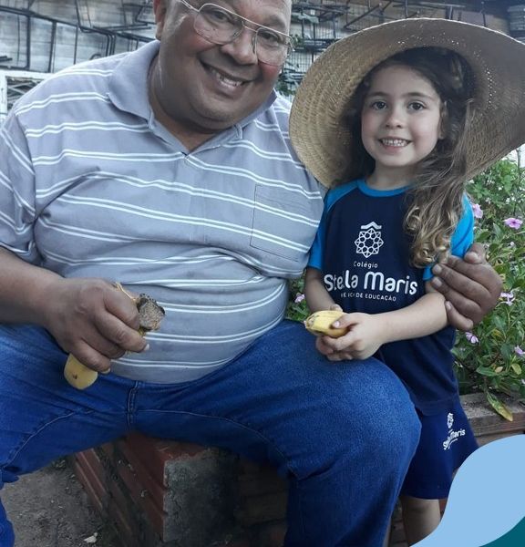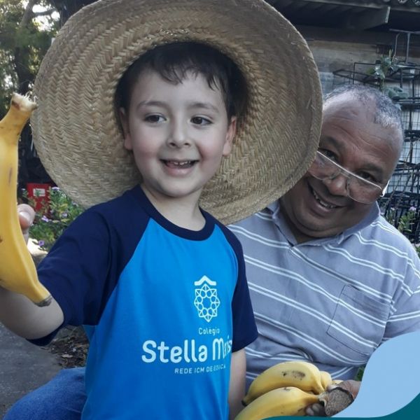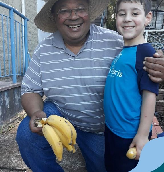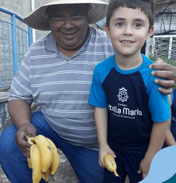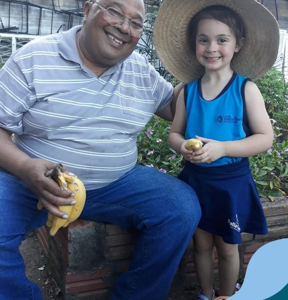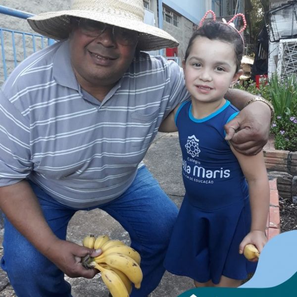 Na última sexta-feira, a turma de Maternal 2 recebeu a visita do querido amigo Seu Lobato. Ele contou para as crianças como é a vida no sítio e que é devoto de São Francisco. Pediu para que todos continuassem sendo bons amigos, sempre cuidando da natureza e dos animais. E trouxe de lembrança uma banana para cada um, lembrando da importância da alimentação saudável nas nossas vidas. Muito obrigada, Seu Lobato, por tanto carinho com nossa turminha amada. As “profes” Cris e Lélis também adoraram a visita! Gratidão por este dia tão legal!