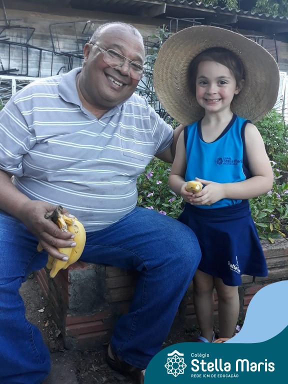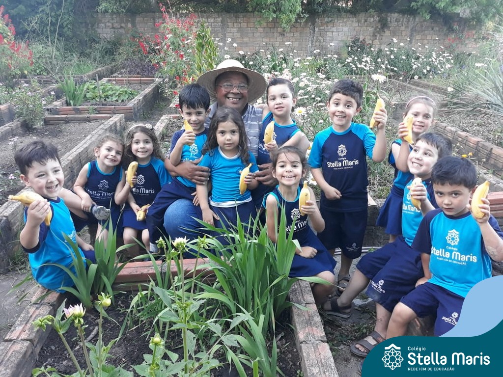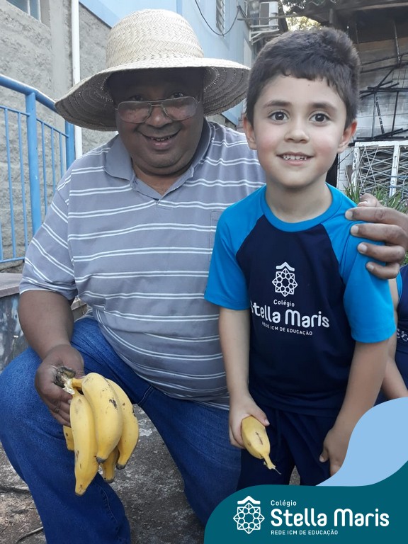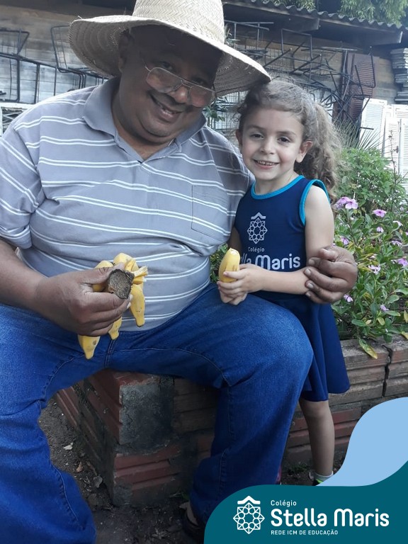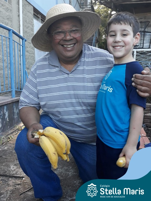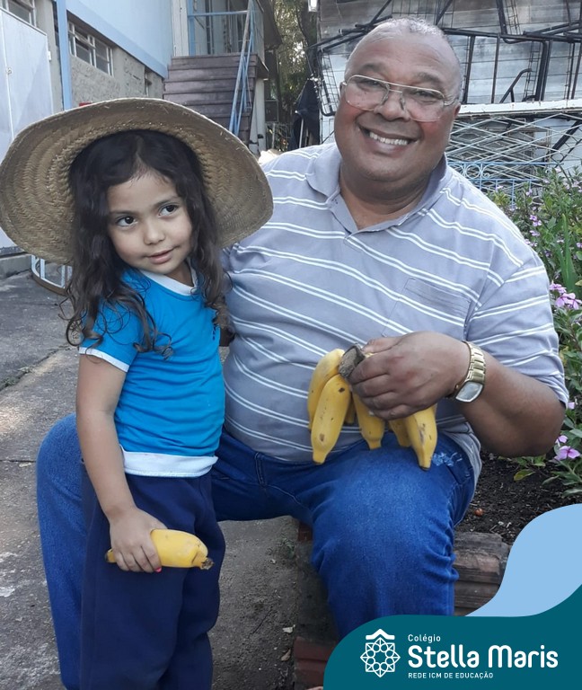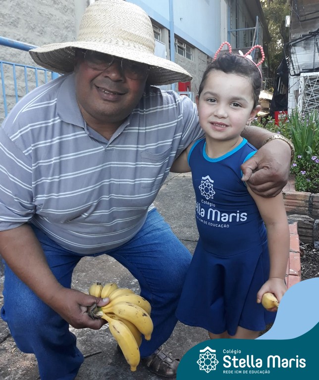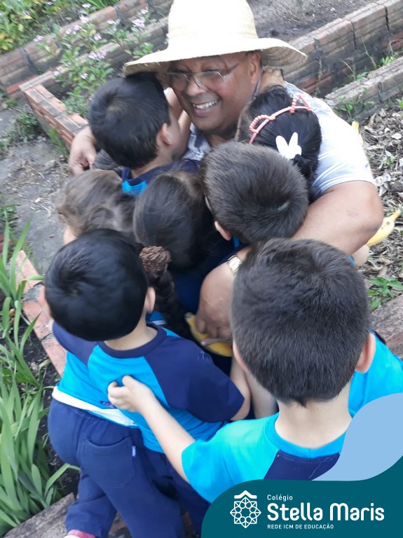 Na última sexta-feira, a turma de Maternal 2 recebeu a visita do querido amigo Seu Lobato. Ele contou para as crianças como é a vida no sítio e que é devoto de São Francisco. Pediu para que todos continuassem sendo bons amigos, sempre cuidando da natureza e dos animais. E trouxe de lembrança uma banana para cada um, lembrando da importância da alimentação saudável nas nossas vidas. Muito obrigada, Seu Lobato, por tanto carinho com nossa turminha amada. As “profes” Cris e Lélis também adoraram a visita! Gratidão por este dia tão legal!