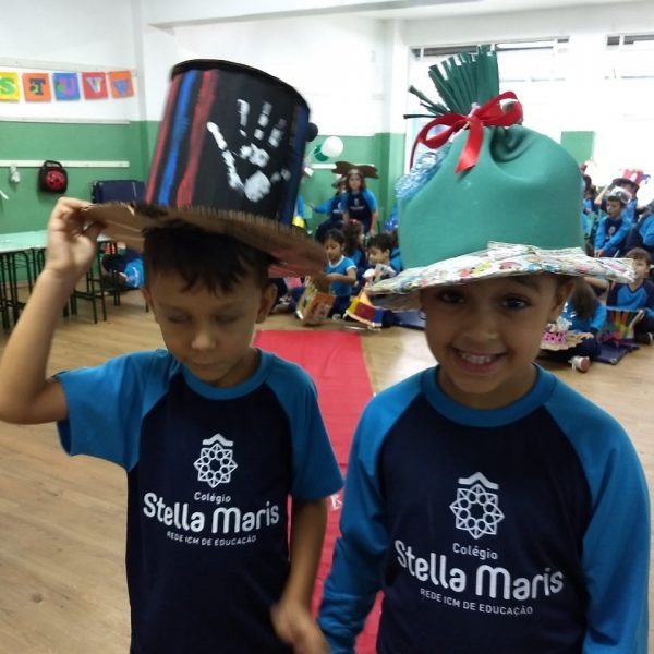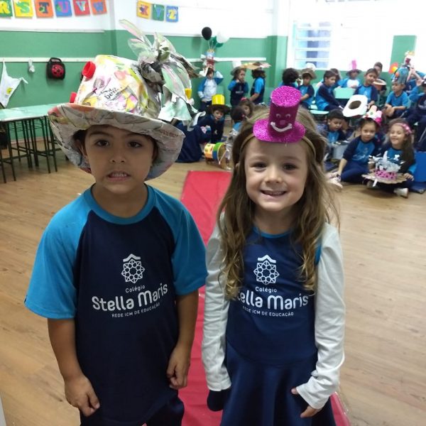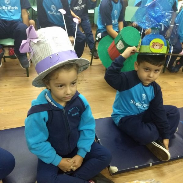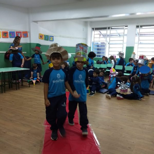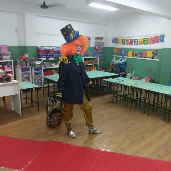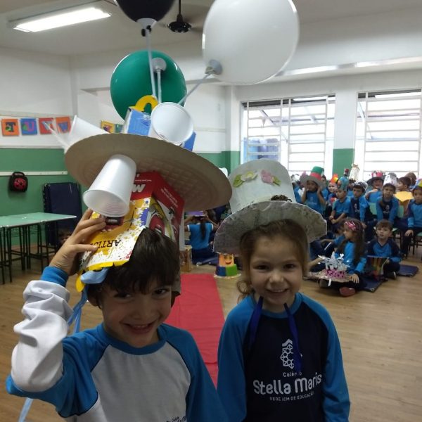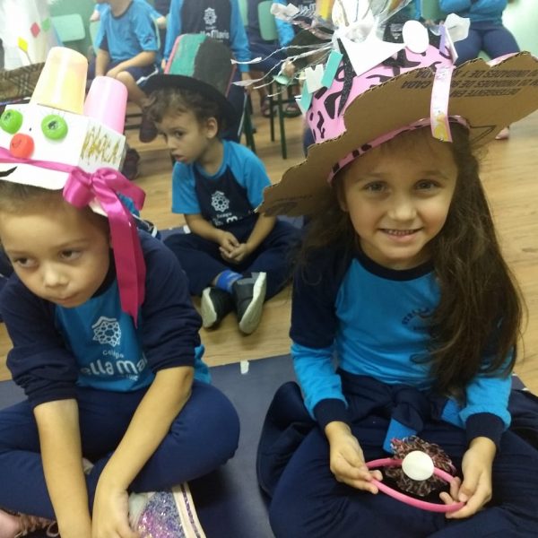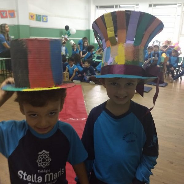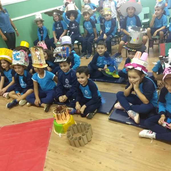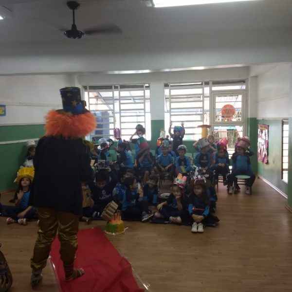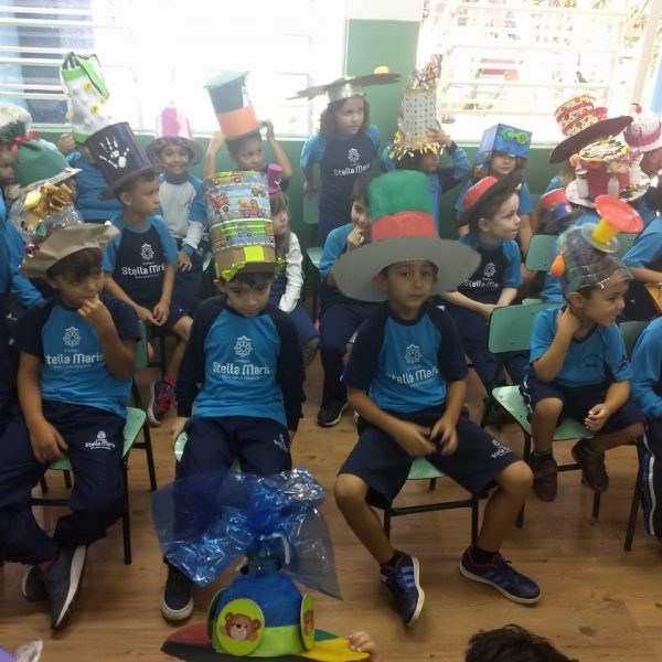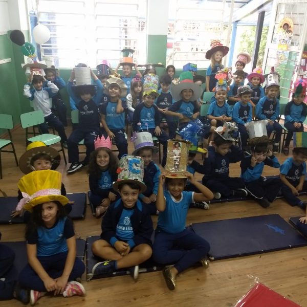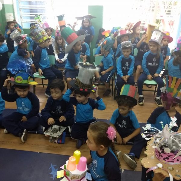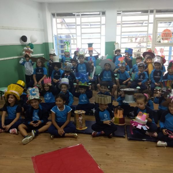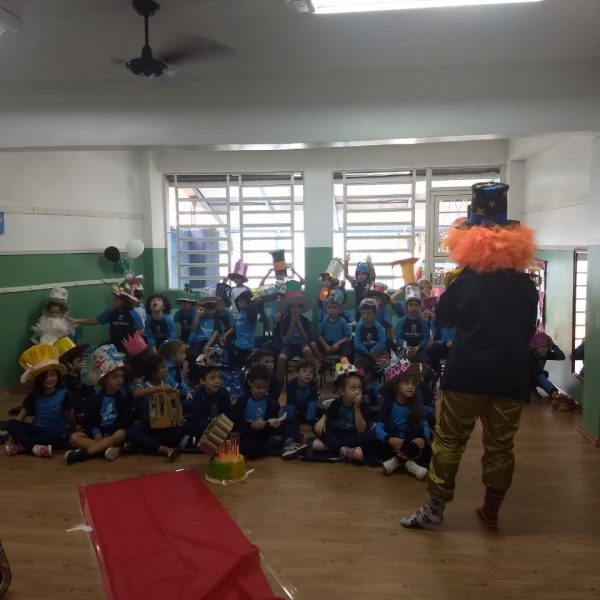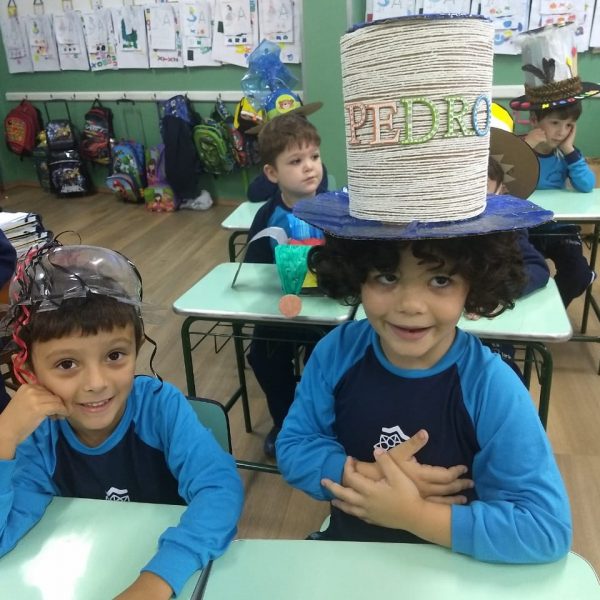 Na última sexta-feira, as turmas de PRÉ 2 receberam uma visita inesperada! O Chapeleiro Maluco, que nos contou por que seu amigo coelho, que sempre o acompanha na história da Alice no país das maravilhas, está com pressa… Através da bela história do caso dos ovos e mágicas, chapeleiro encantou nossos alunos! E claro, que não podia faltar, os lindos e criativos chapéus trazidos pelos alunos, que as professoras aproveitaram para explorar a reciclagem, encerrando com uma “festa” do chapéu em homenagem a visita do Reino encantado.
