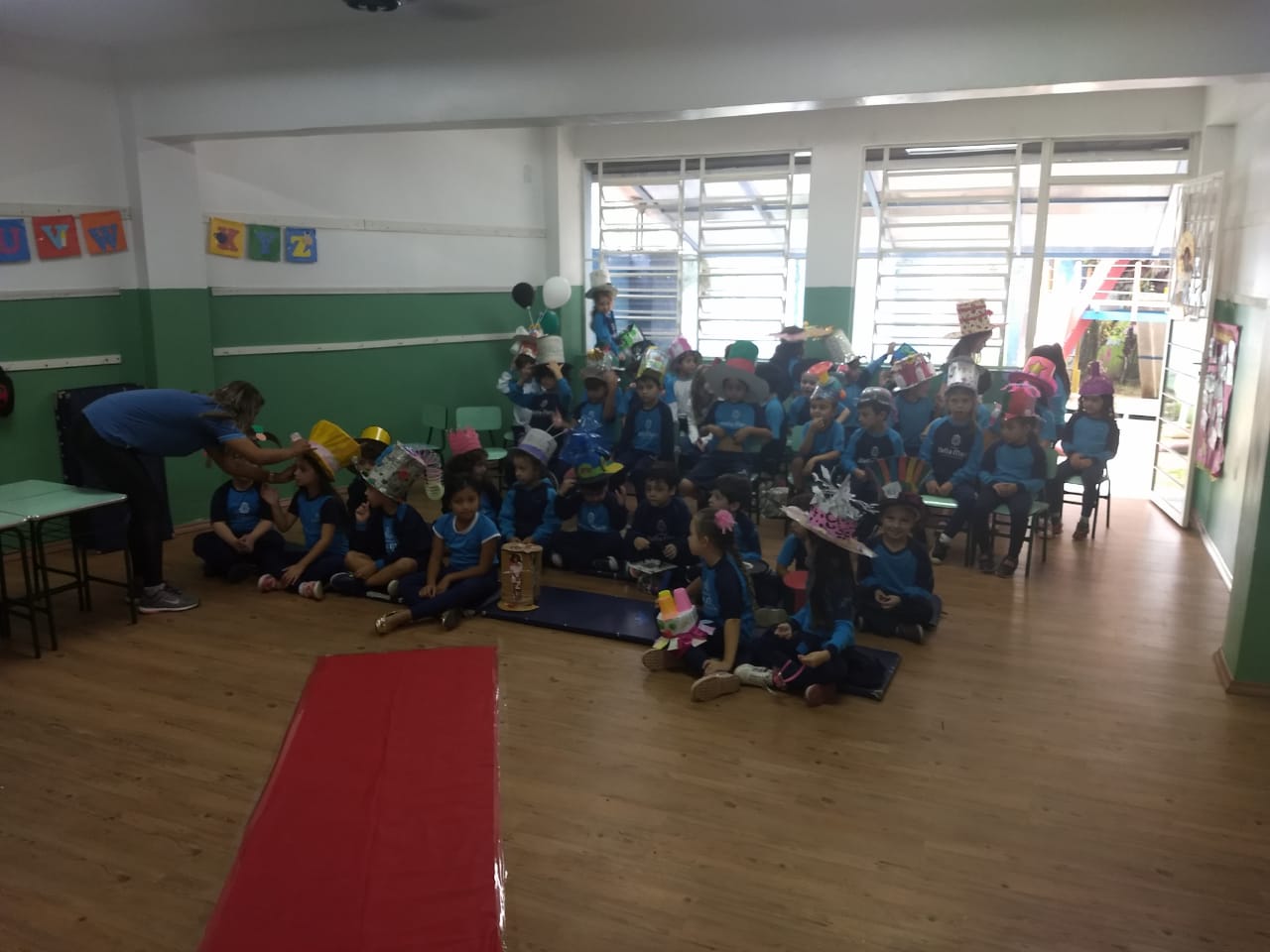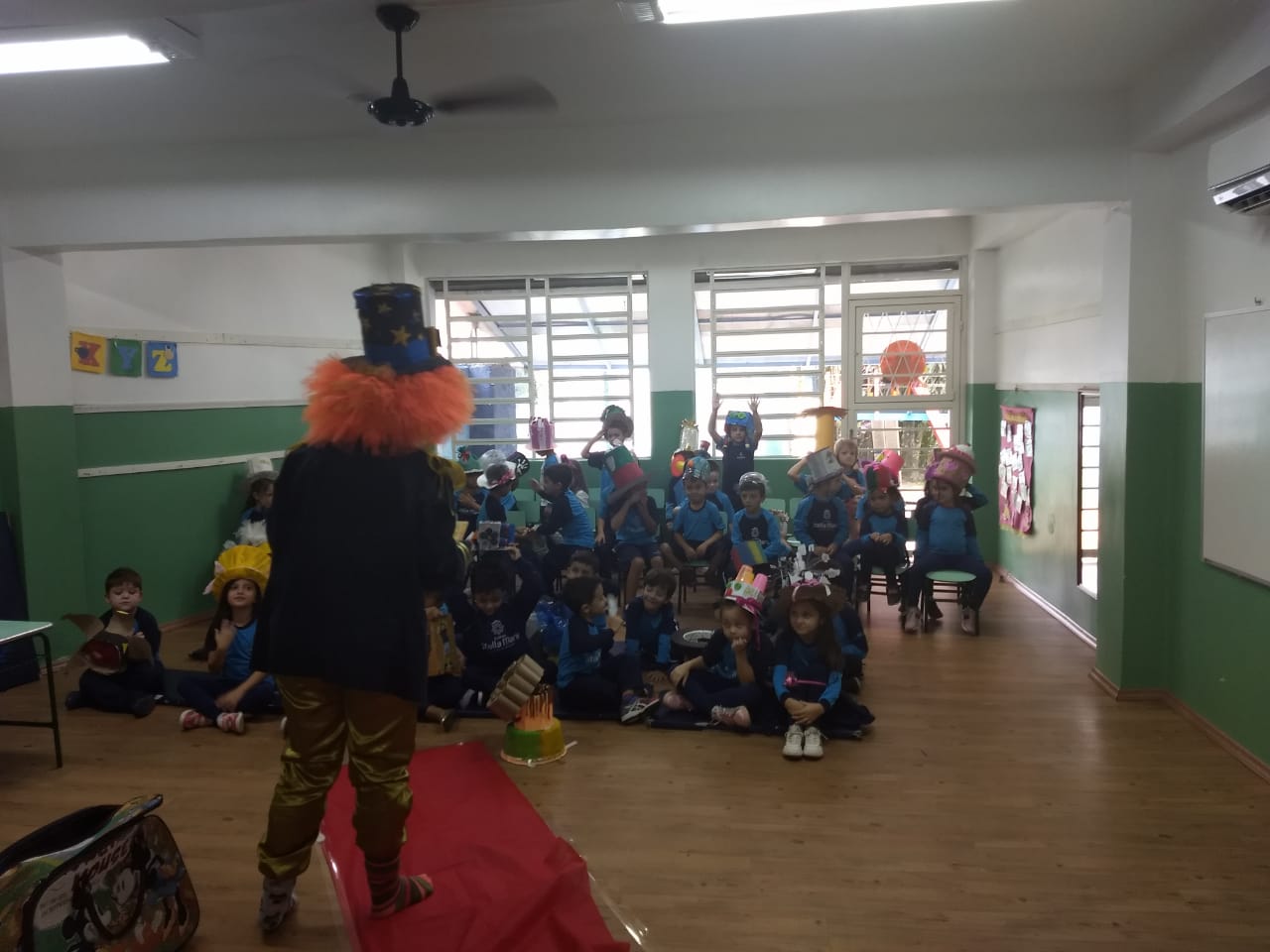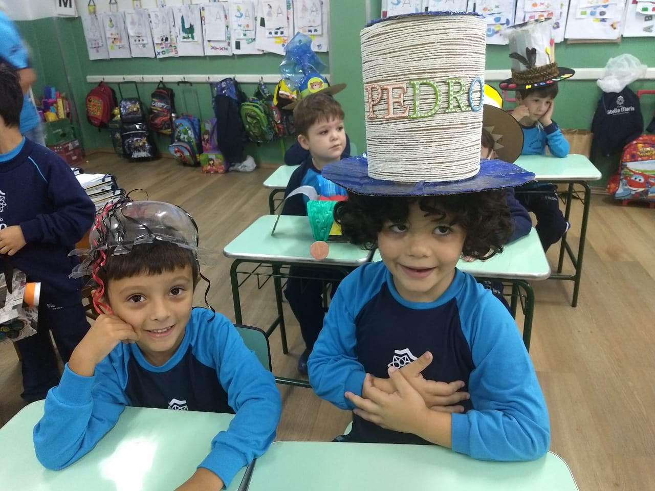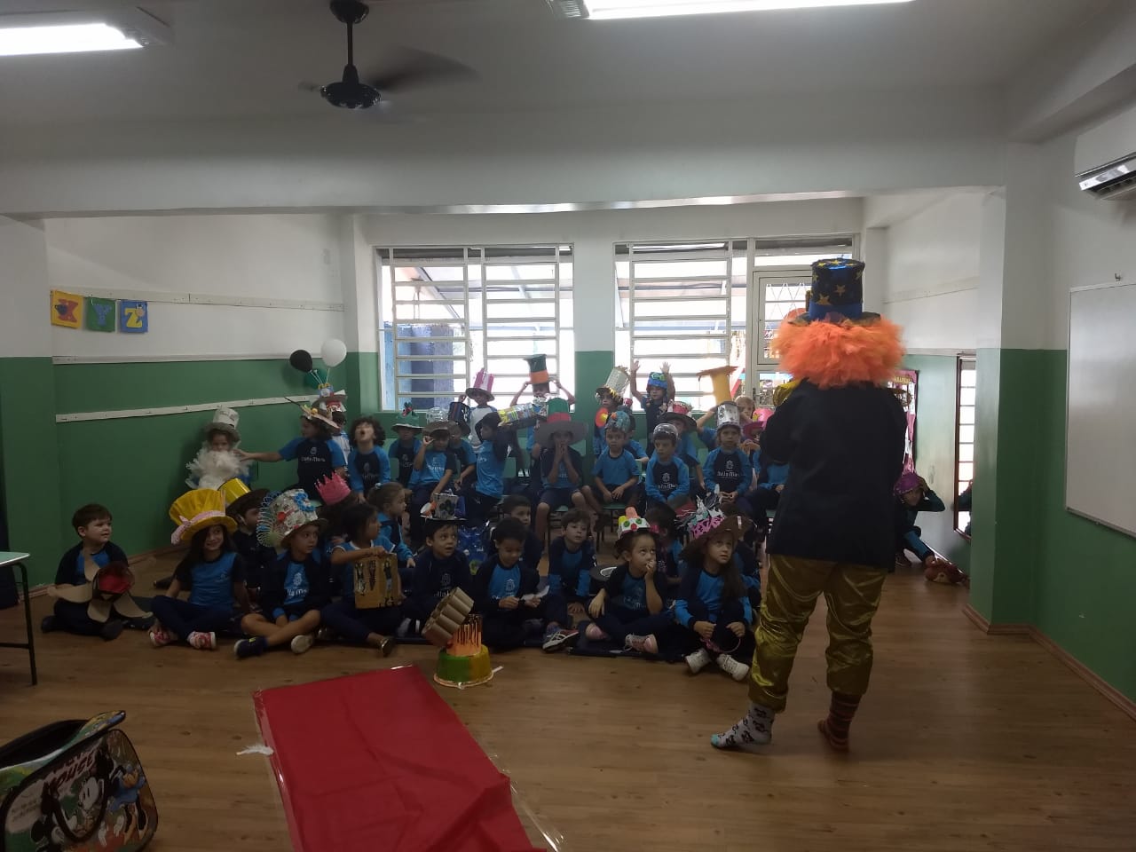 Na última sexta-feira, as turmas de PRÉ 2 receberam uma visita inesperada! O Chapeleiro Maluco, que nos contou por que seu amigo coelho, que sempre o acompanha na história da Alice no país das maravilhas, está com pressa… Através da bela história do caso dos ovos e mágicas, chapeleiro encantou nossos alunos! E claro, que não podia faltar, os lindos e criativos chapéus trazidos pelos alunos, que as professoras aproveitaram para explorar a reciclagem, encerrando com uma “festa” do chapéu em homenagem a visita do Reino encantado.