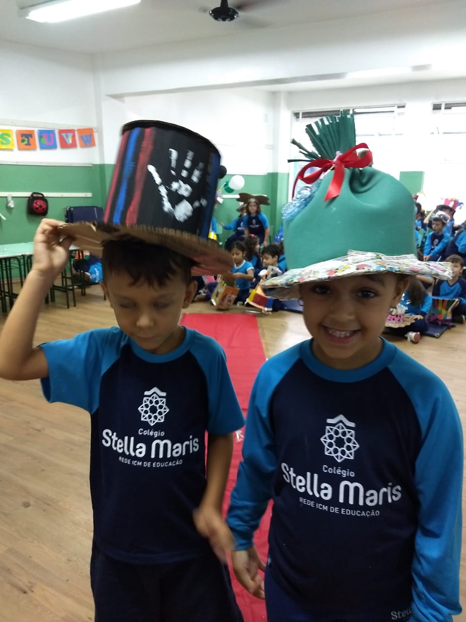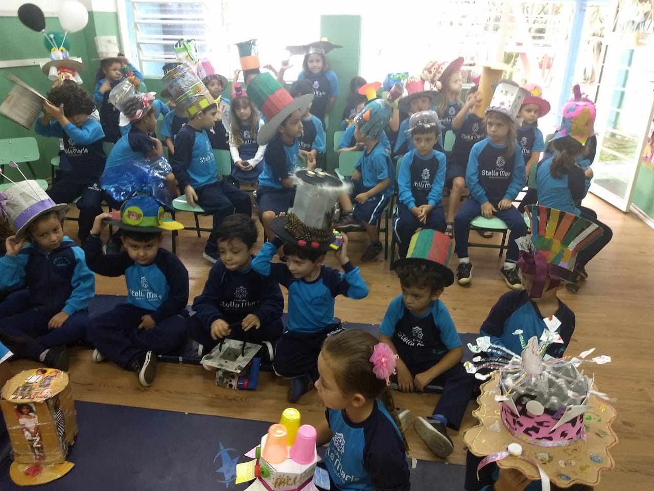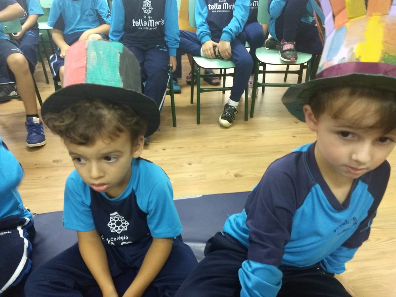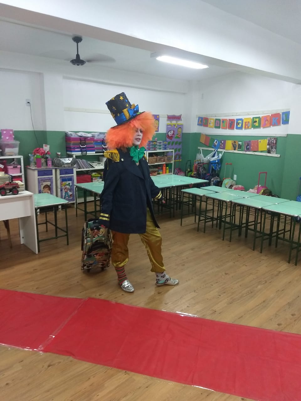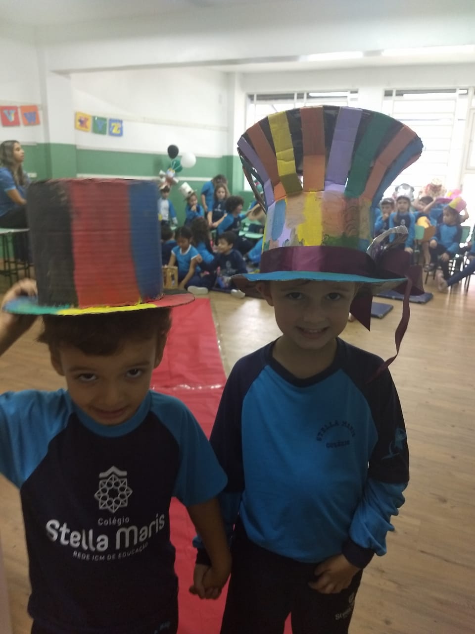 Na última sexta-feira, as turmas de PRÉ 2 receberam uma visita inesperada! O Chapeleiro Maluco, que nos contou por que seu amigo coelho, que sempre o acompanha na história da Alice no país das maravilhas, está com pressa… Através da bela história do caso dos ovos e mágicas, chapeleiro encantou nossos alunos! E claro, que não podia faltar, os lindos e criativos chapéus trazidos pelos alunos, que as professoras aproveitaram para explorar a reciclagem, encerrando com uma “festa” do chapéu em homenagem a visita do Reino encantado.