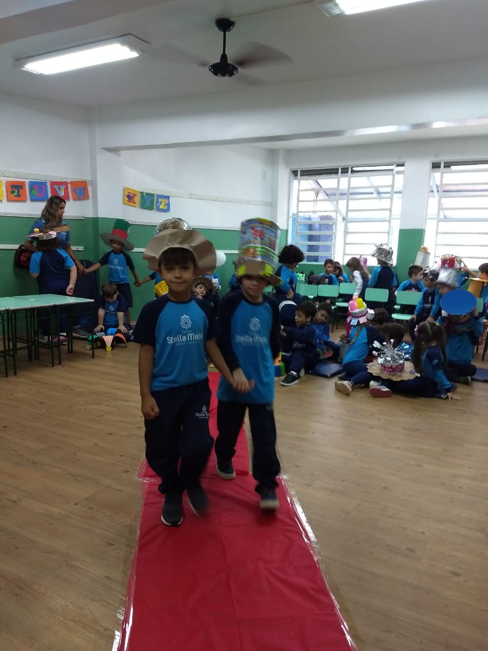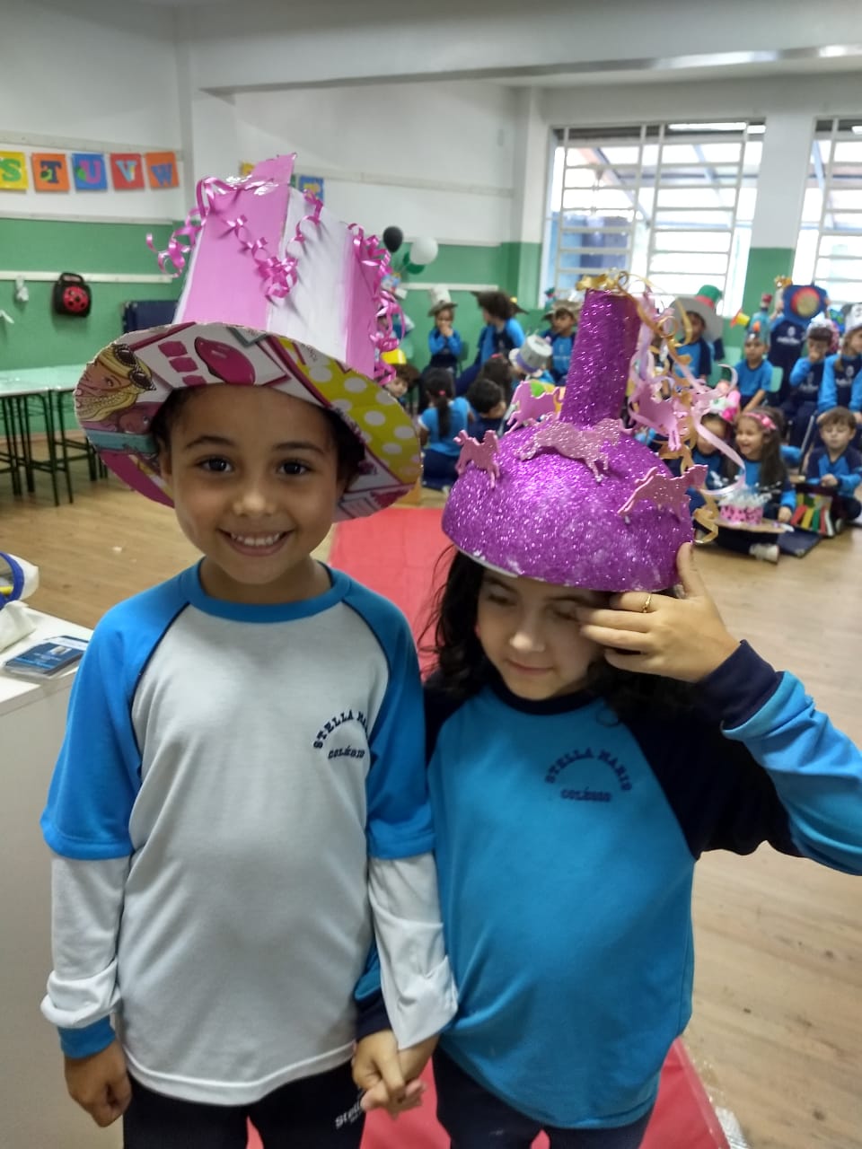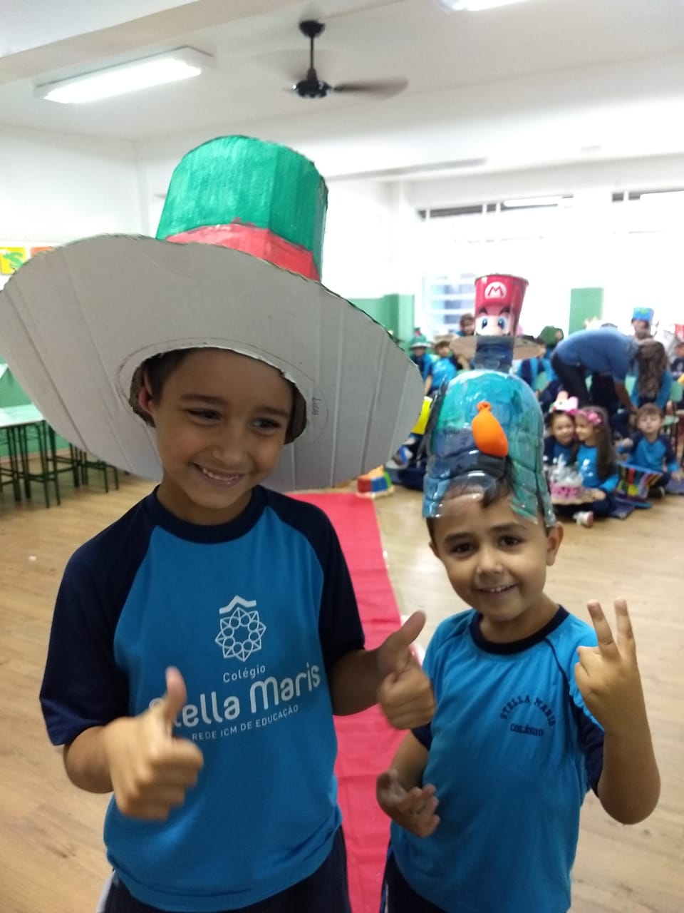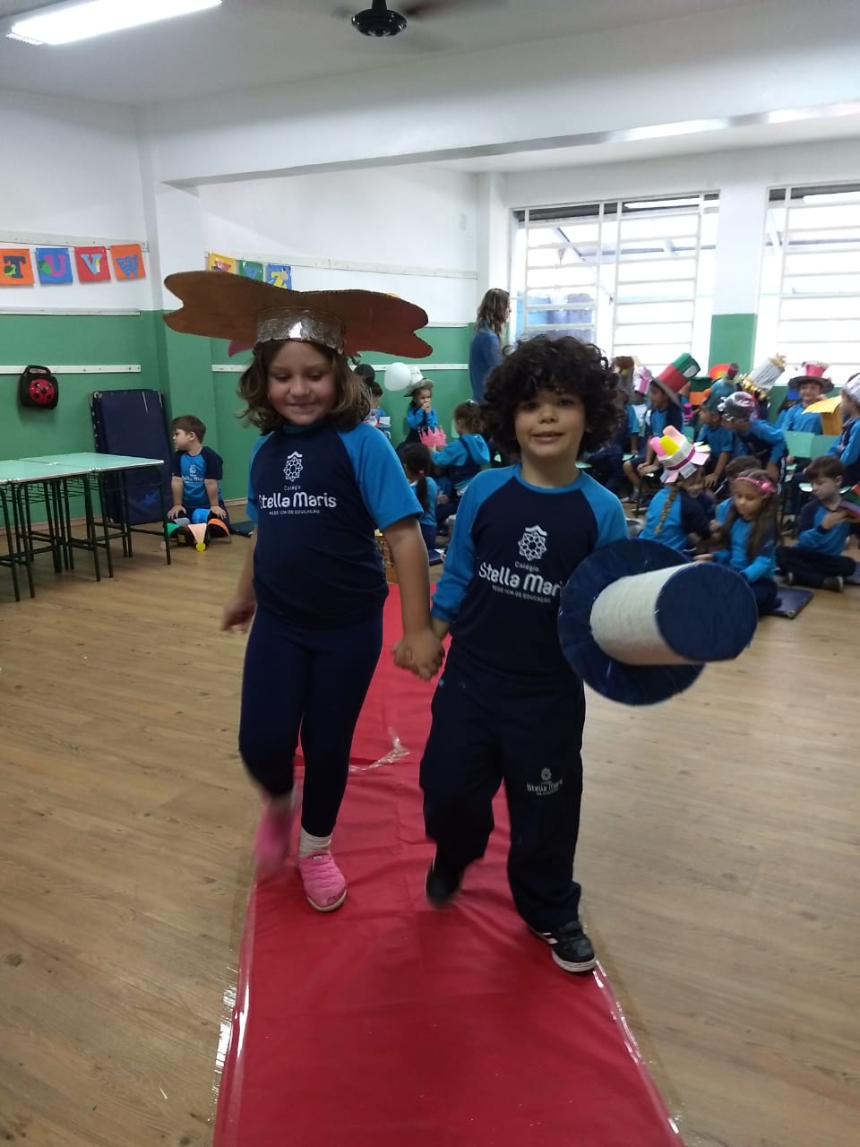 Na última sexta-feira, as turmas de PRÉ 2 receberam uma visita inesperada! O Chapeleiro Maluco, que nos contou por que seu amigo coelho, que sempre o acompanha na história da Alice no país das maravilhas, está com pressa… Através da bela história do caso dos ovos e mágicas, chapeleiro encantou nossos alunos! E claro, que não podia faltar, os lindos e criativos chapéus trazidos pelos alunos, que as professoras aproveitaram para explorar a reciclagem, encerrando com uma “festa” do chapéu em homenagem a visita do Reino encantado.