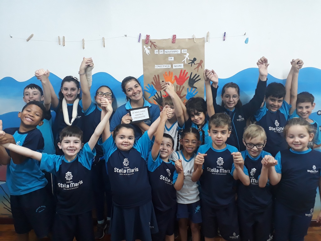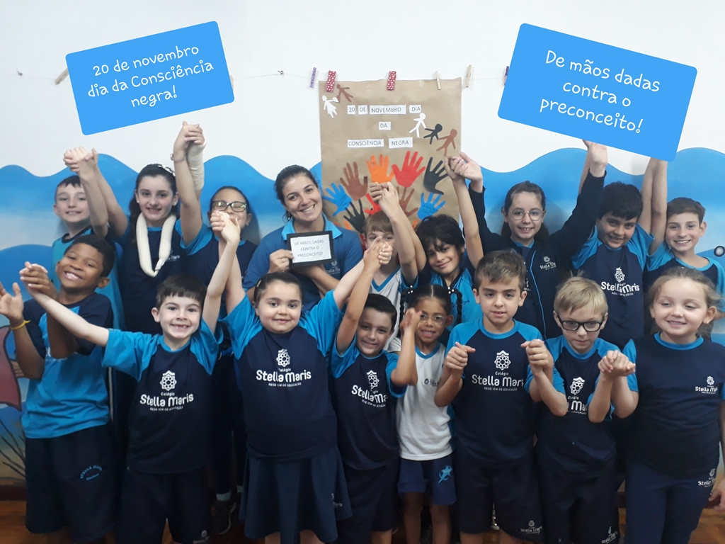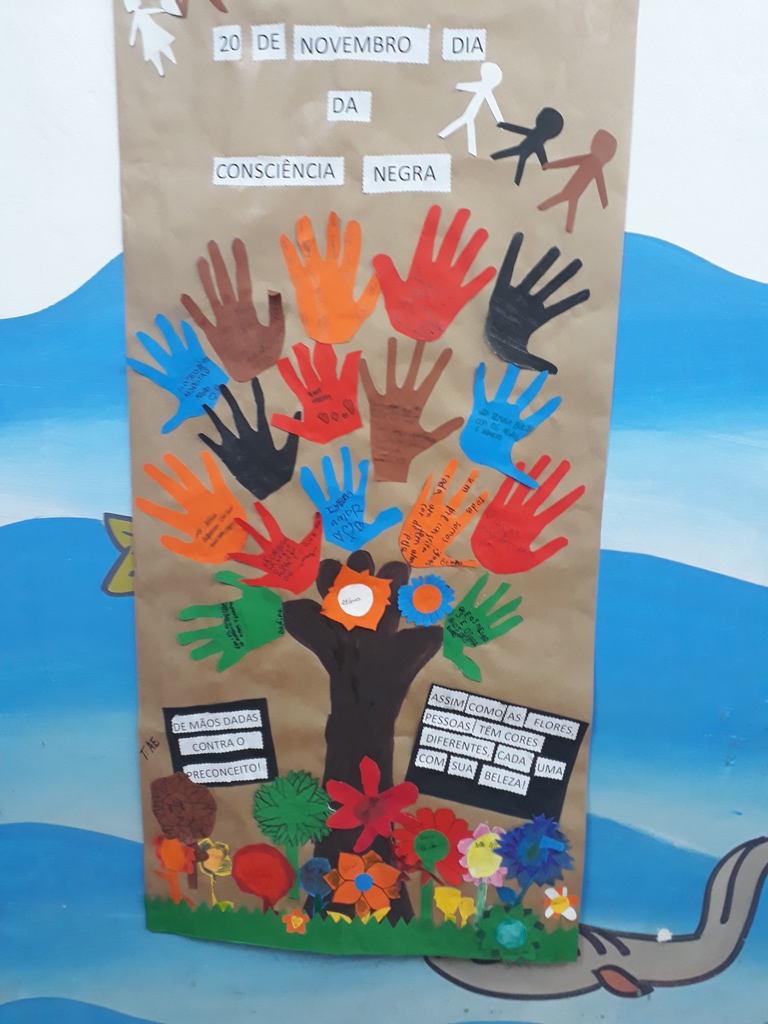 Com o intuito de promover a reflexão sobre igualdade racial e estimular também o respeito às diferenças, a turma da Atividade Extracurricular (Turno Inverso) realizou atividades em grupo e um belo trabalho para mostrar o que aprendem diariamente em nossa escola!