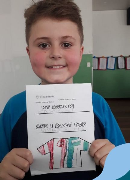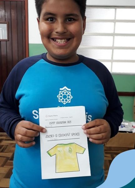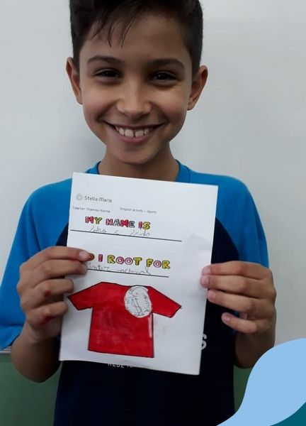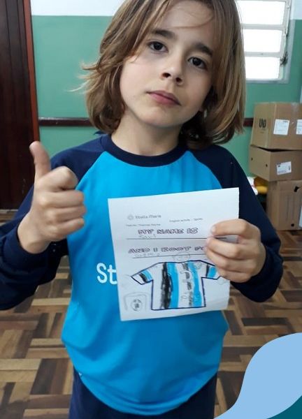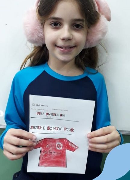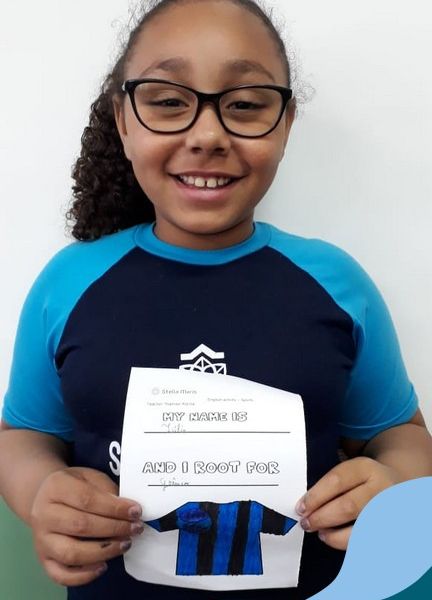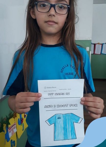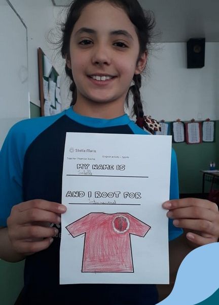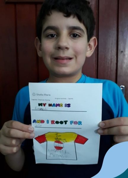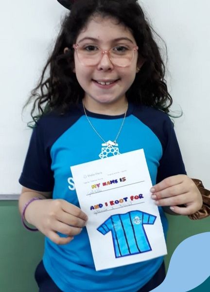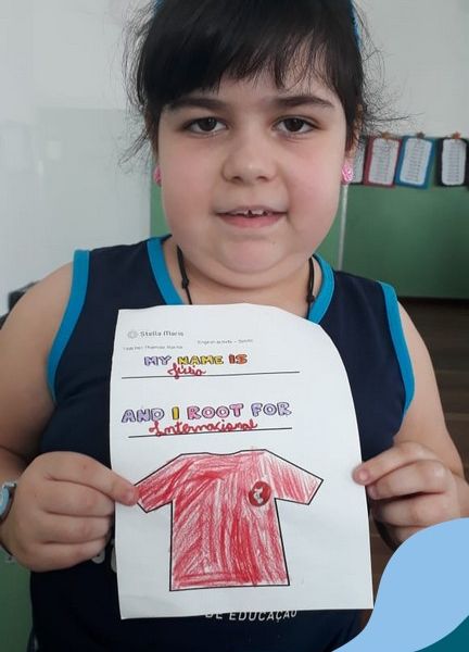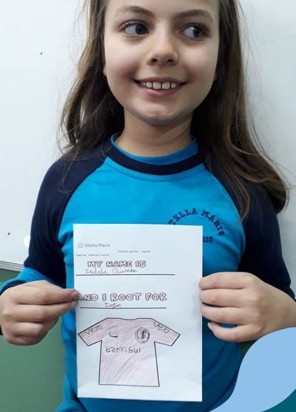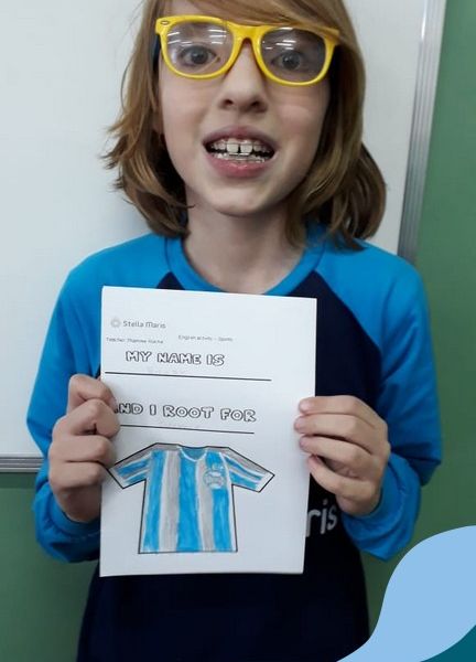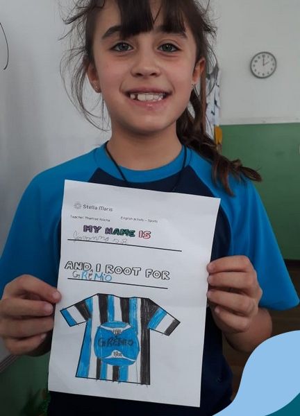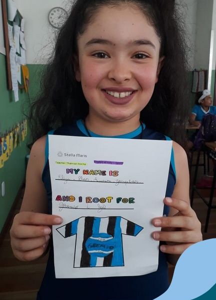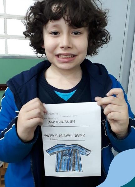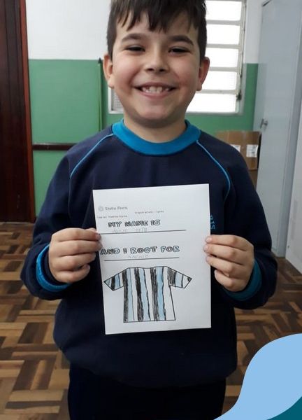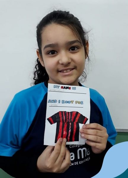 Para finalizar o conteúdo de esportes, na disciplina especializada de inglês com a professora Thamise, as turmas 31, 32 e 33 fizeram uma atividade sobre soccer (futebol), o esporte favorito da maioria dos alunos. Para isso, eles deveriam completar a frase “I root for…” (eu torço para…) com o nome do time favorito.