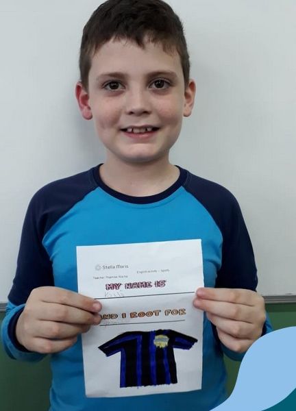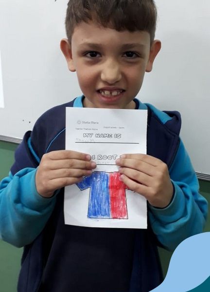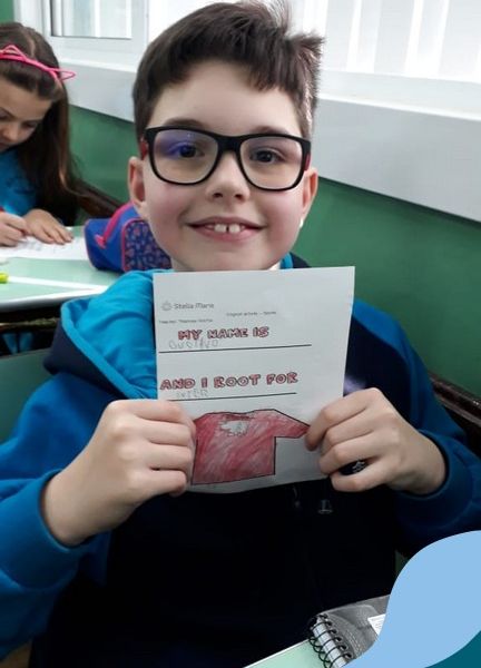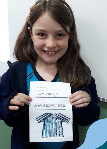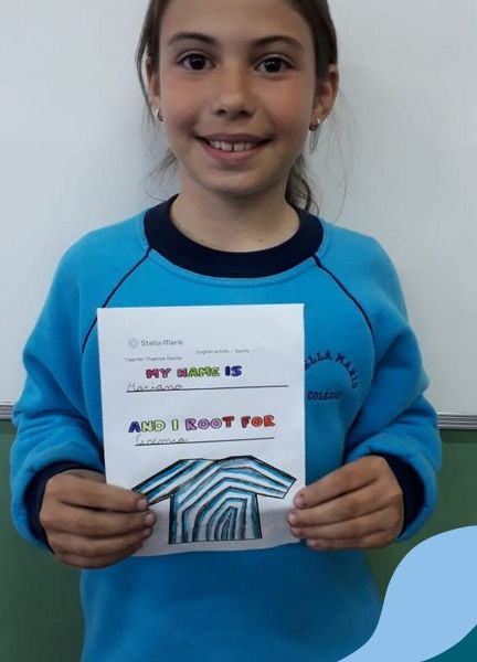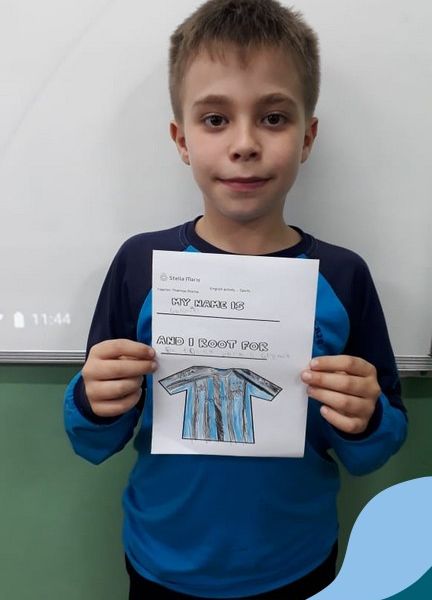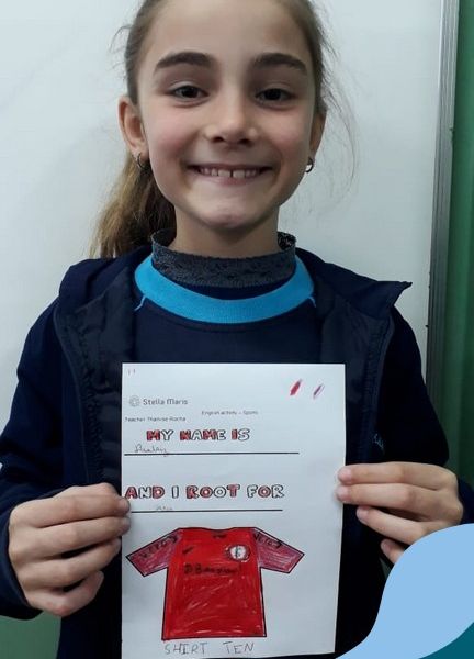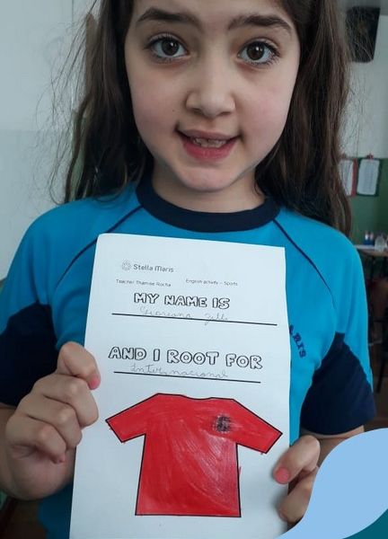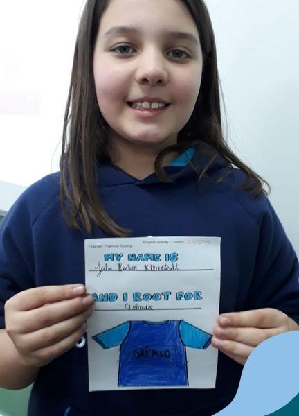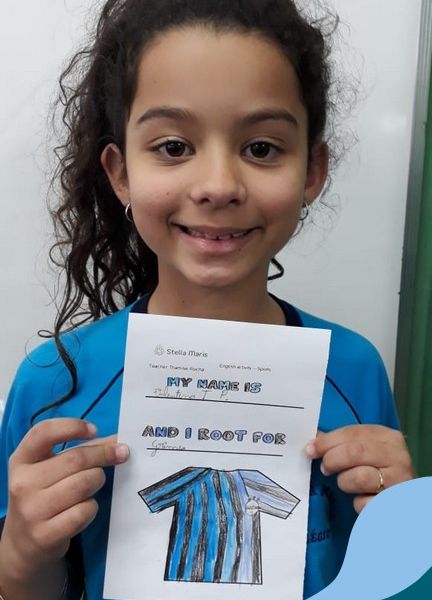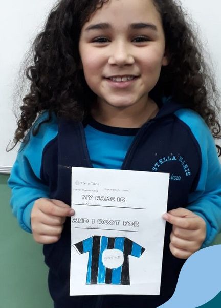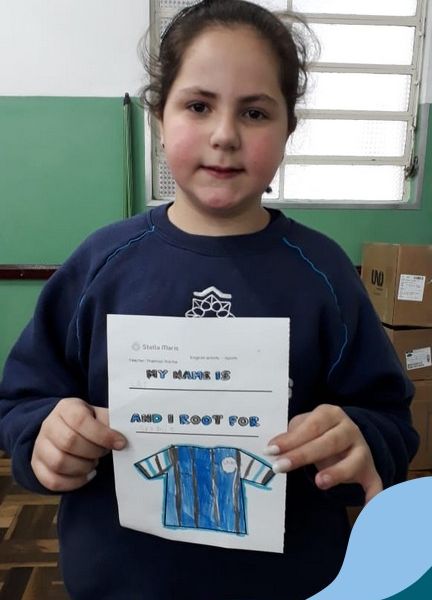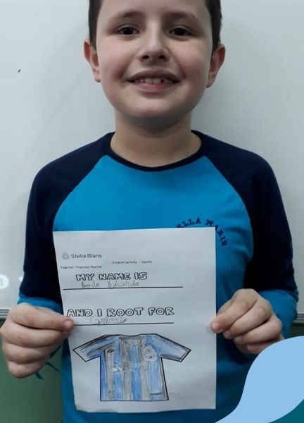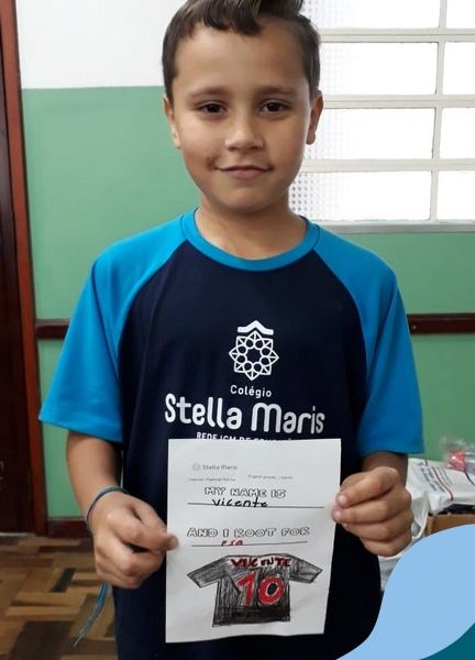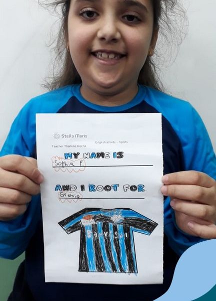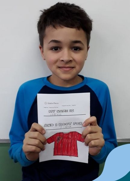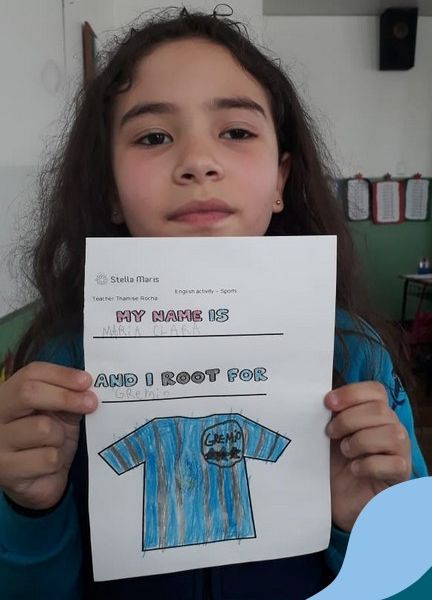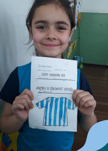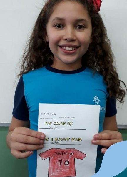 Para finalizar o conteúdo de esportes, na disciplina especializada de inglês com a professora Thamise, as turmas 31, 32 e 33 fizeram uma atividade sobre soccer (futebol), o esporte favorito da maioria dos alunos. Para isso, eles deveriam completar a frase “I root for…” (eu torço para…) com o nome do time favorito.