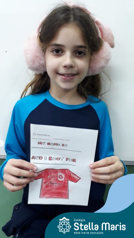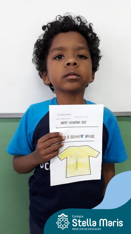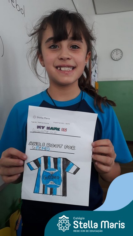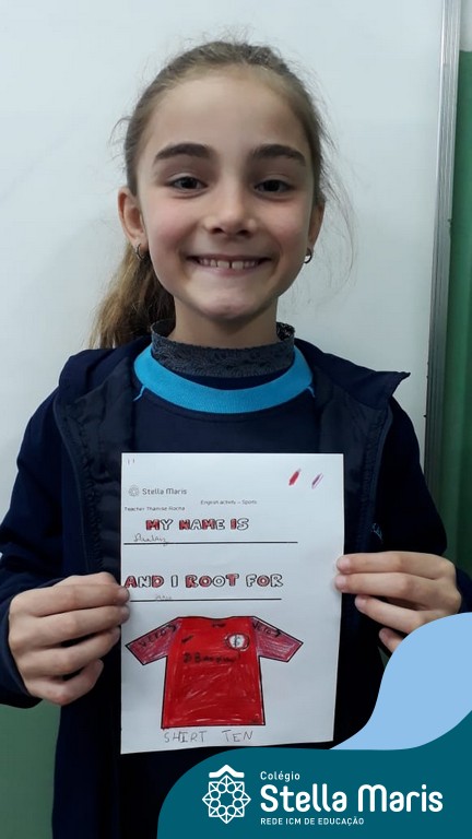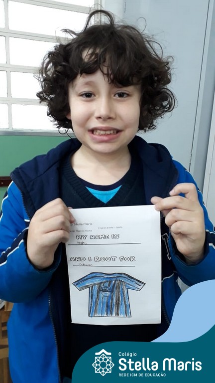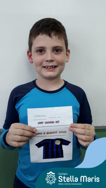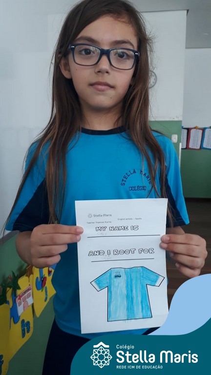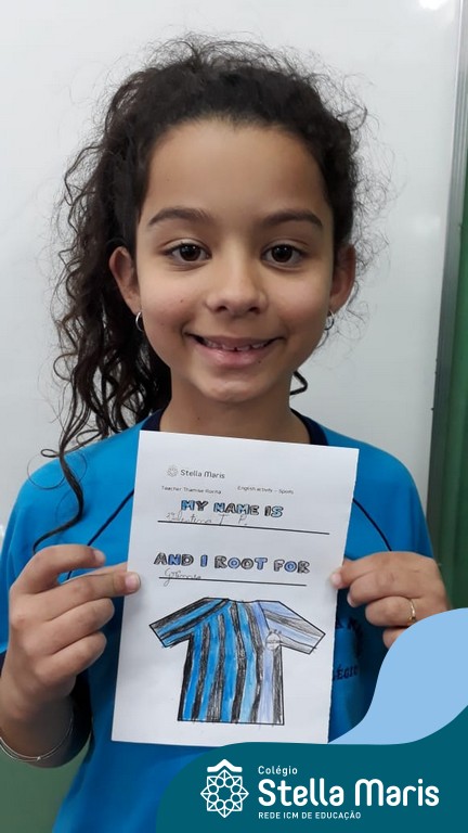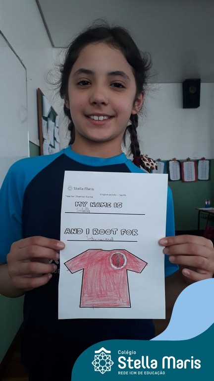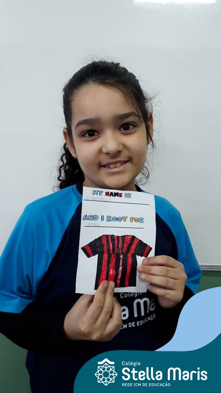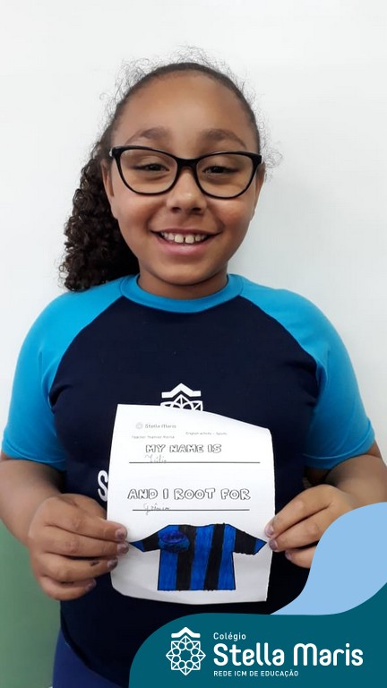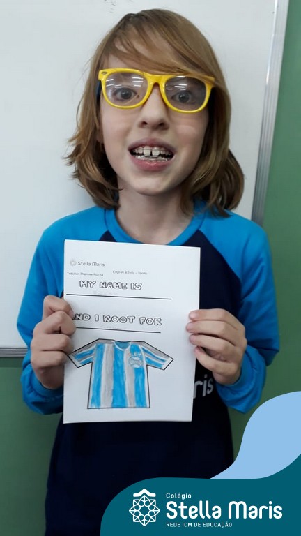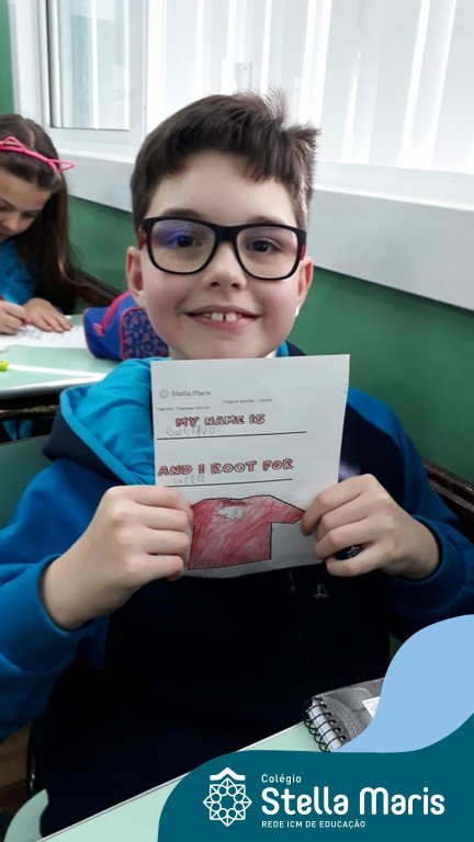 Para finalizar o conteúdo de esportes, na disciplina especializada de inglês com a professora Thamise, as turmas 31, 32 e 33 fizeram uma atividade sobre soccer (futebol), o esporte favorito da maioria dos alunos. Para isso, eles deveriam completar a frase “I root for…” (eu torço para…) com o nome do time favorito.