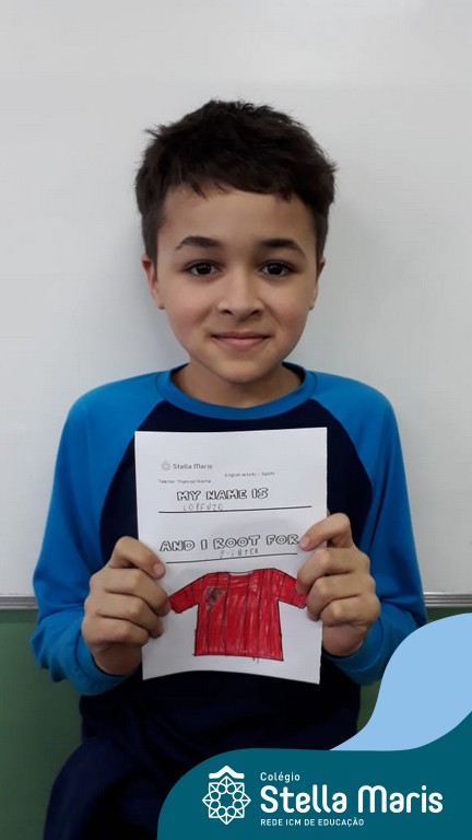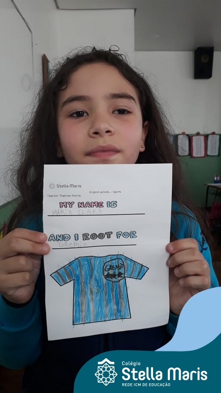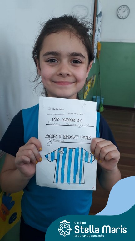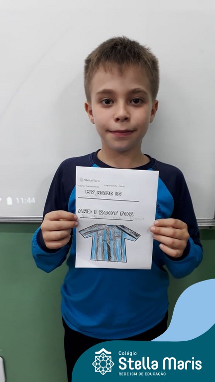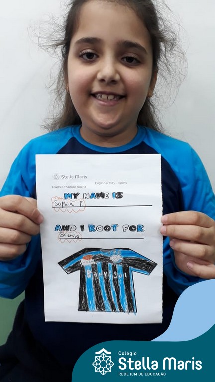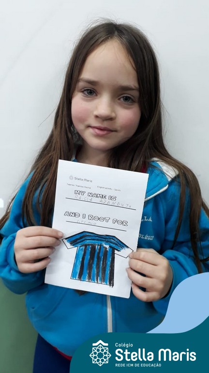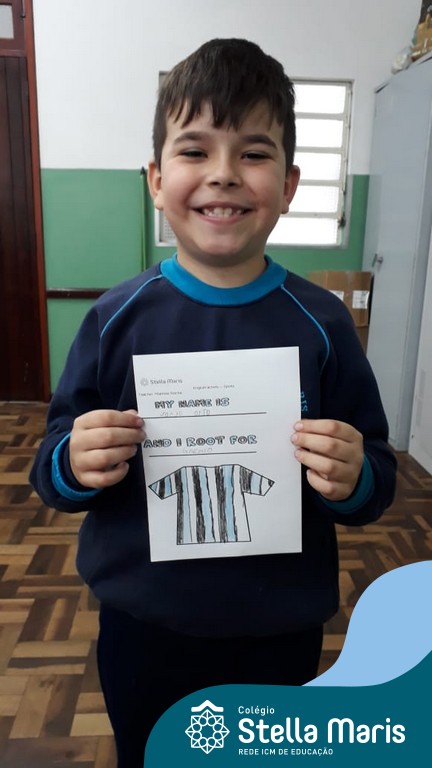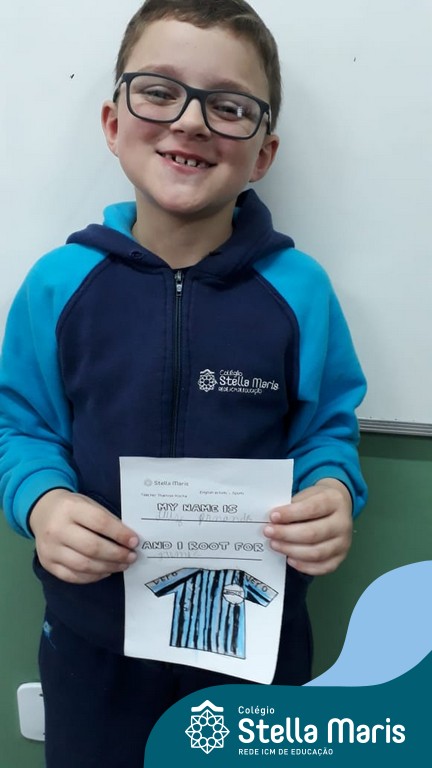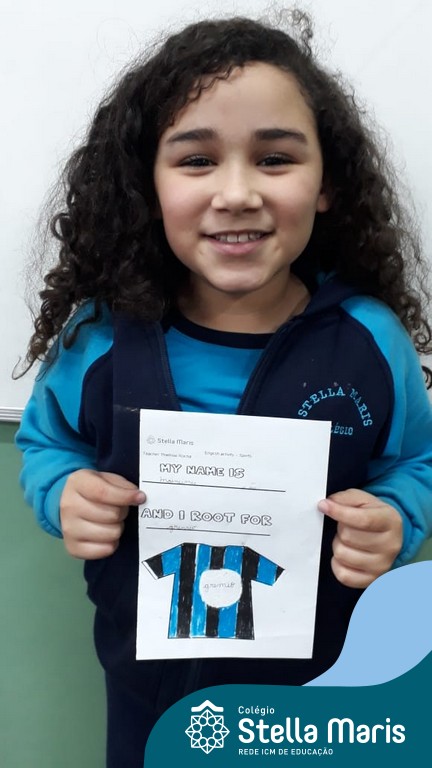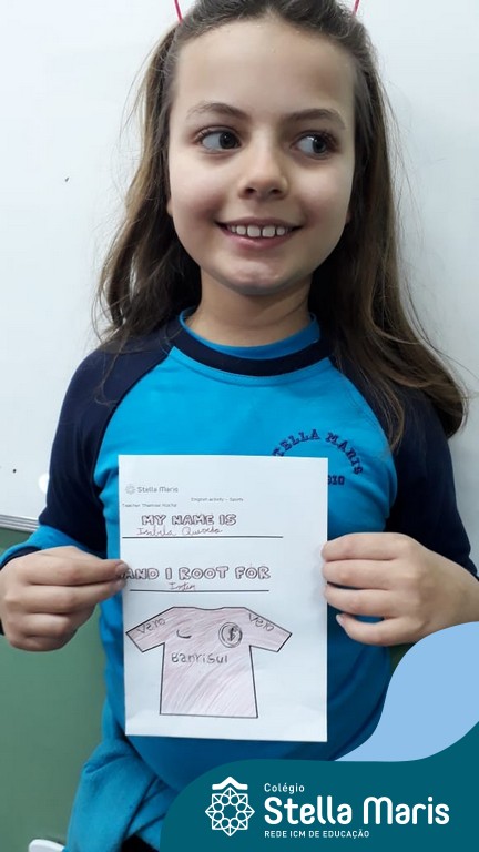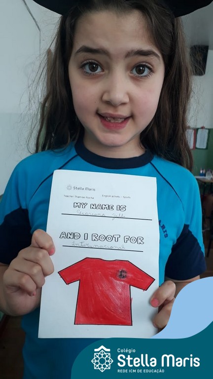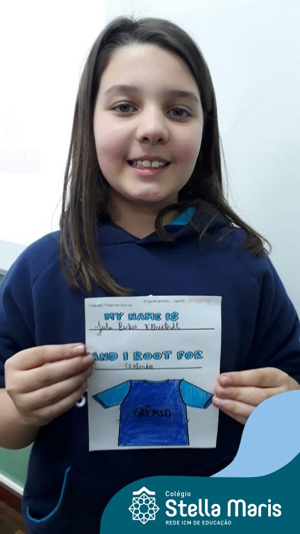 Para finalizar o conteúdo de esportes, na disciplina especializada de inglês com a professora Thamise, as turmas 31, 32 e 33 fizeram uma atividade sobre soccer (futebol), o esporte favorito da maioria dos alunos. Para isso, eles deveriam completar a frase “I root for…” (eu torço para…) com o nome do time favorito.