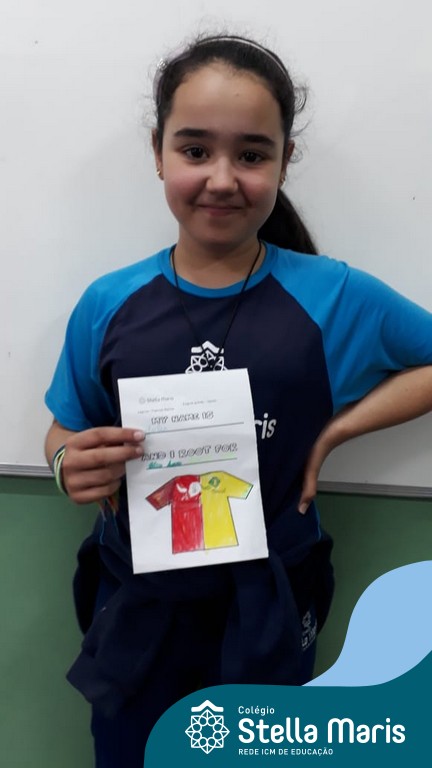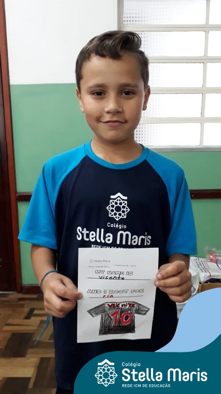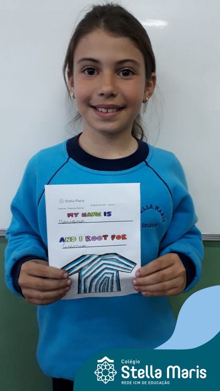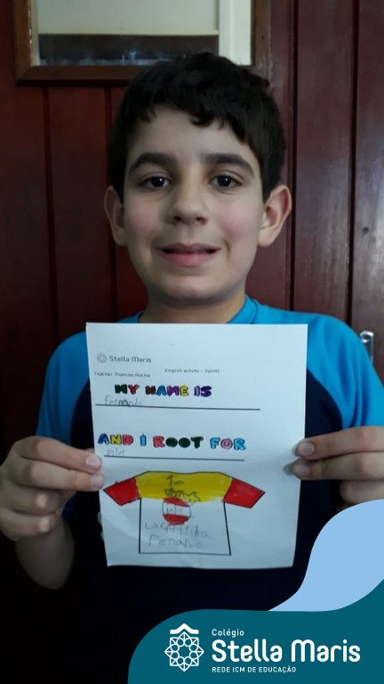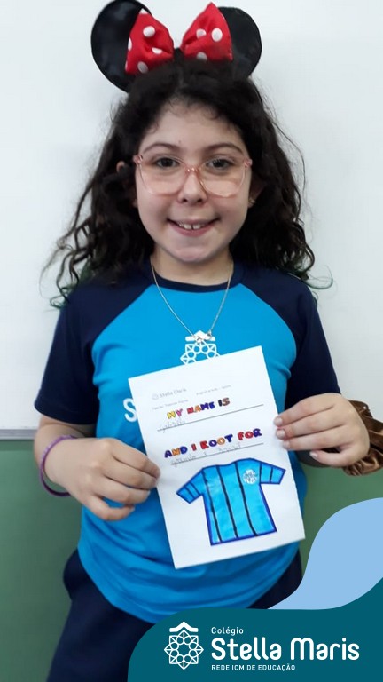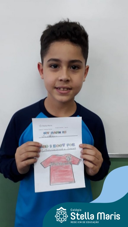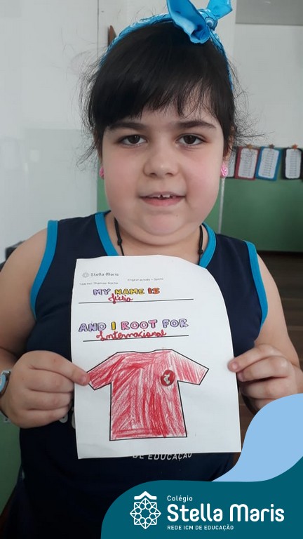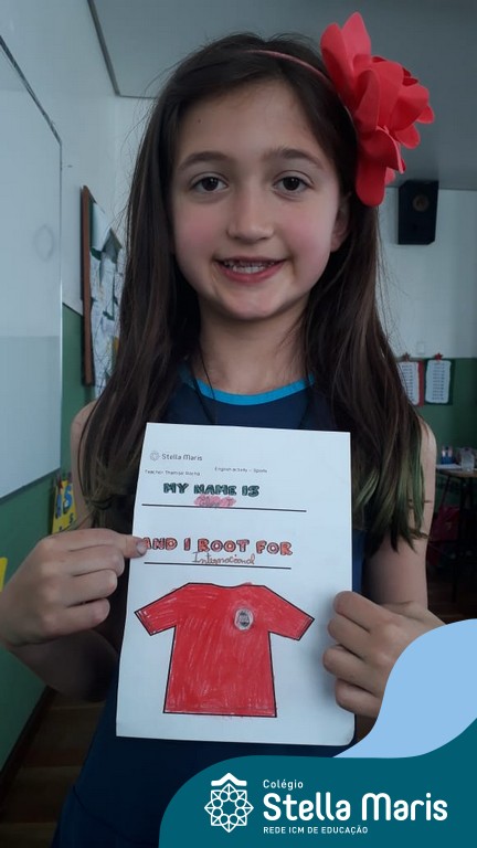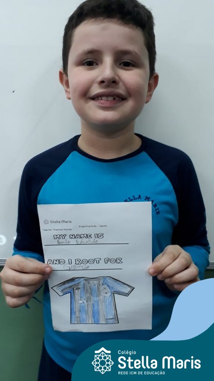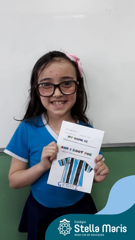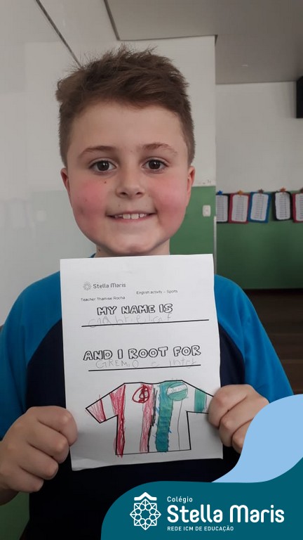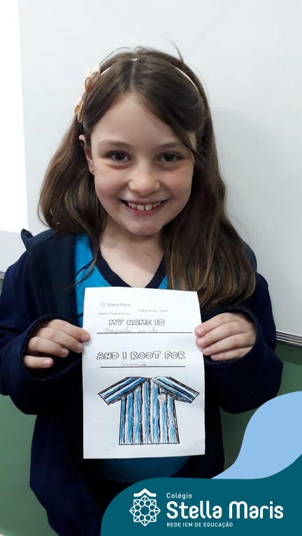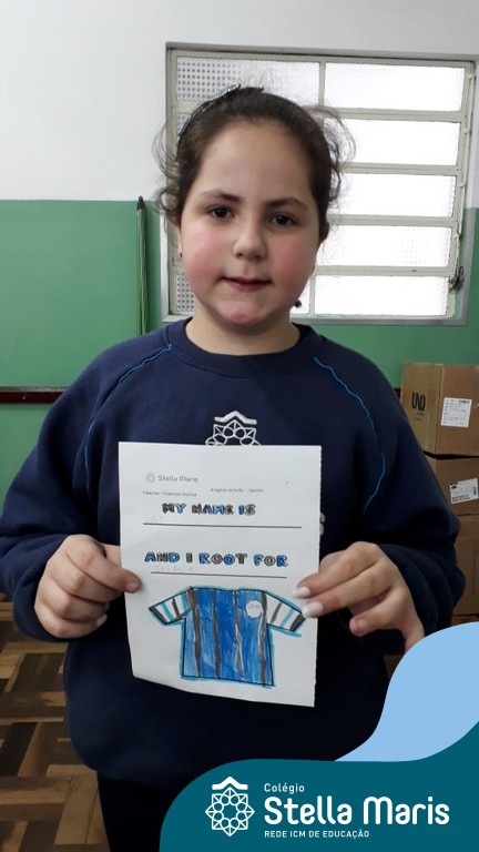 Para finalizar o conteúdo de esportes, na disciplina especializada de inglês com a professora Thamise, as turmas 31, 32 e 33 fizeram uma atividade sobre soccer (futebol), o esporte favorito da maioria dos alunos. Para isso, eles deveriam completar a frase “I root for…” (eu torço para…) com o nome do time favorito.