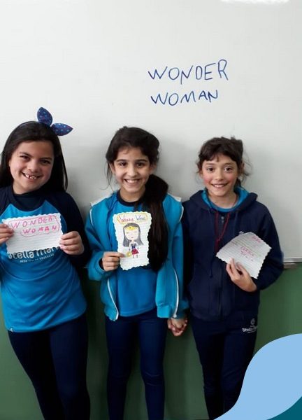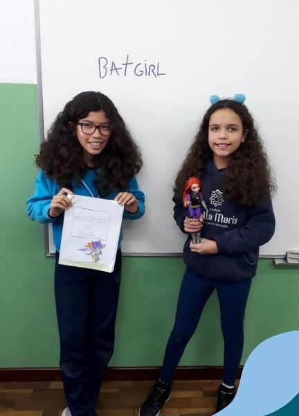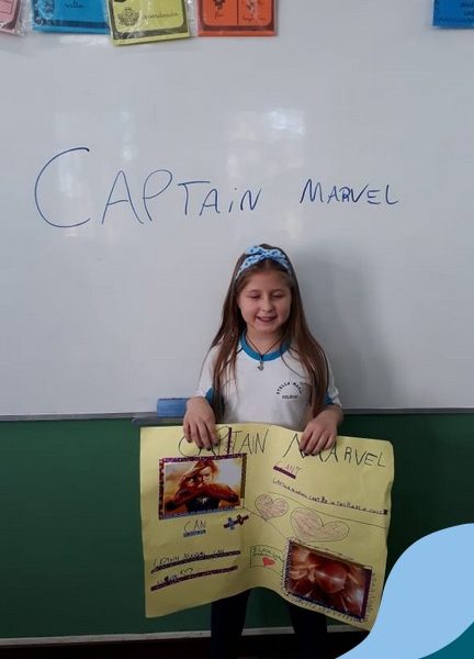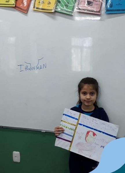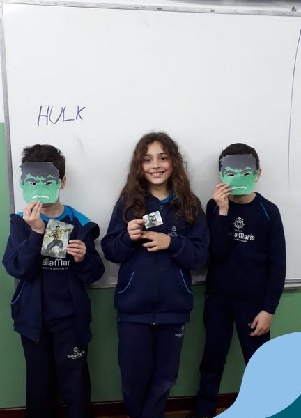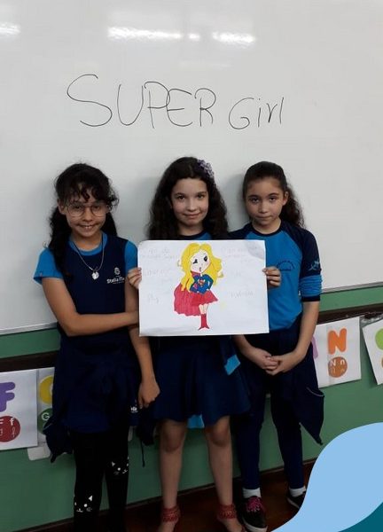 As turmas do quarto ano, na disciplina especializada de inglês com a professora Thamise, trabalharam com o verbo Can (poder/conseguir) no segundo trimestre. Para finalizar o assunto, os alunos foram divididos em duplas ou trios e ficaram responsáveis por pesquisar o que um super-herói consegue ou não fazer. As frases foram apresentadas todas em inglês! Assim, puderam praticar bastante o idioma e ainda aprenderam sobre as habilidades de superheroes!