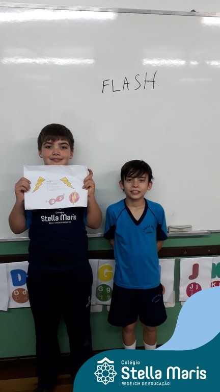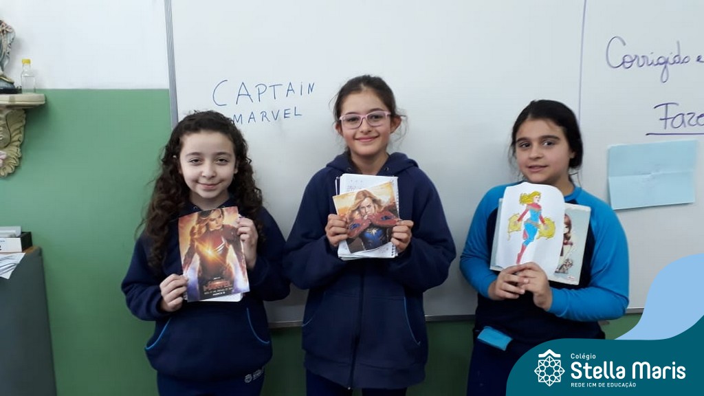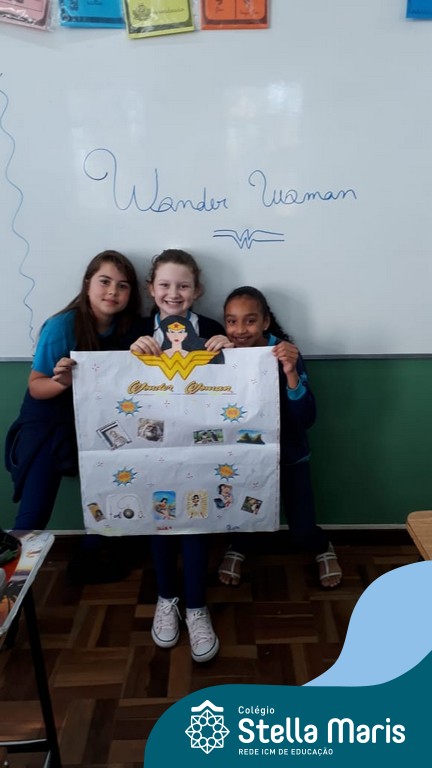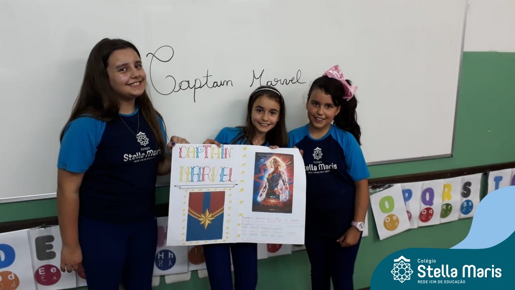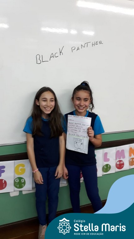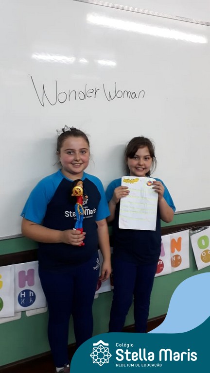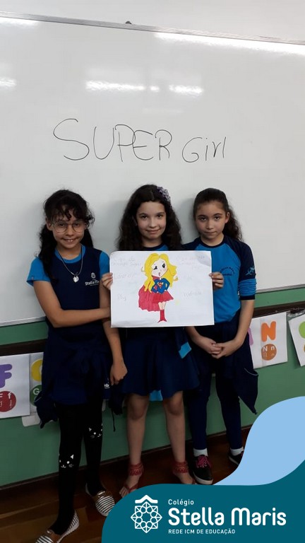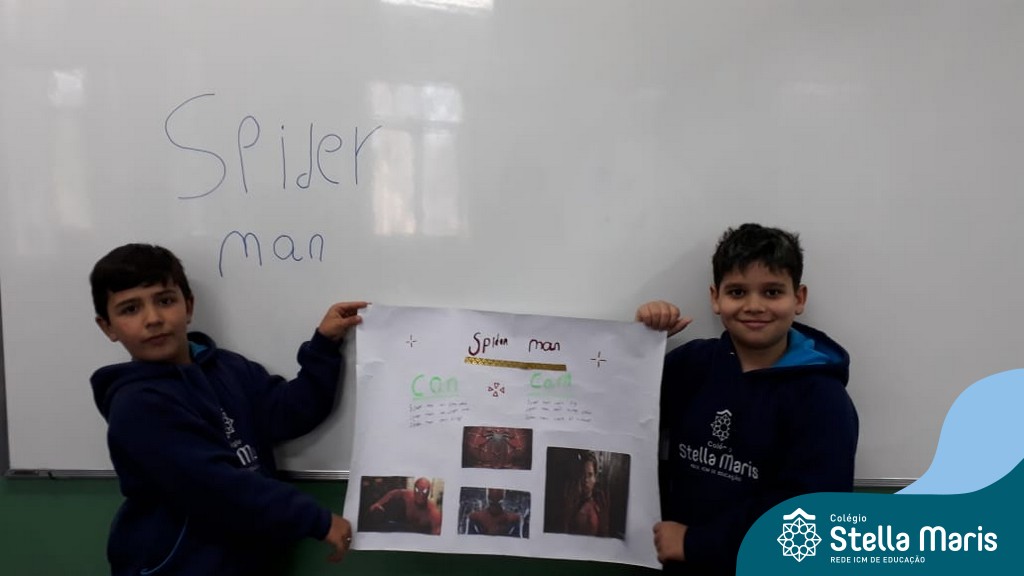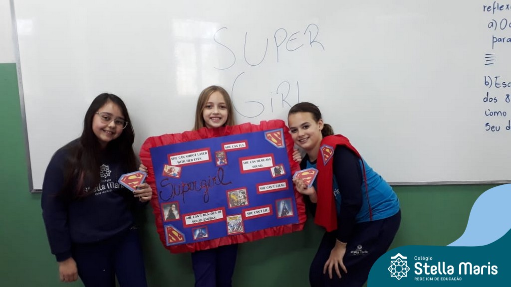 As turmas do quarto ano, na disciplina especializada de inglês com a professora Thamise, trabalharam com o verbo Can (poder/conseguir) no segundo trimestre. Para finalizar o assunto, os alunos foram divididos em duplas ou trios e ficaram responsáveis por pesquisar o que um super-herói consegue ou não fazer. As frases foram apresentadas todas em inglês! Assim, puderam praticar bastante o idioma e ainda aprenderam sobre as habilidades de superheroes!